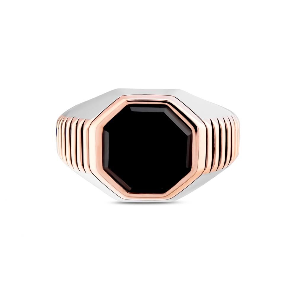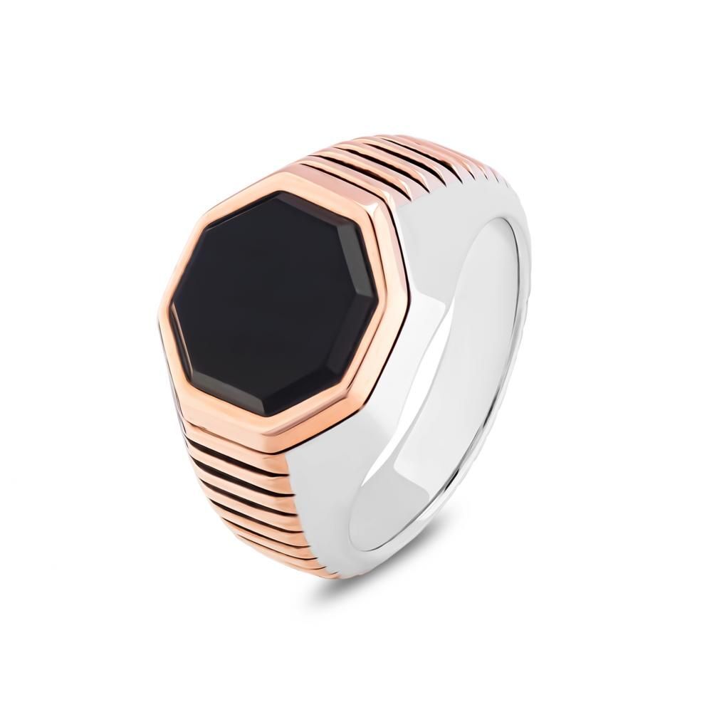 Bravoman Siyah Agat Taşlı Sekizgen Kesim Gümüş Yüzük