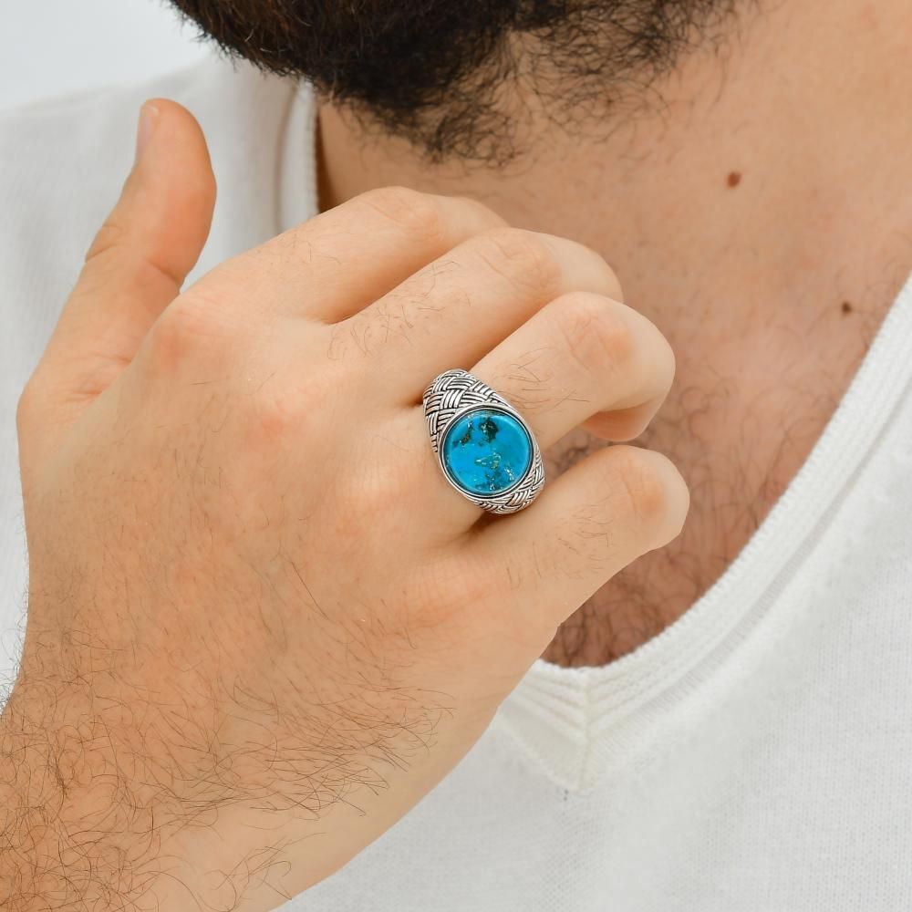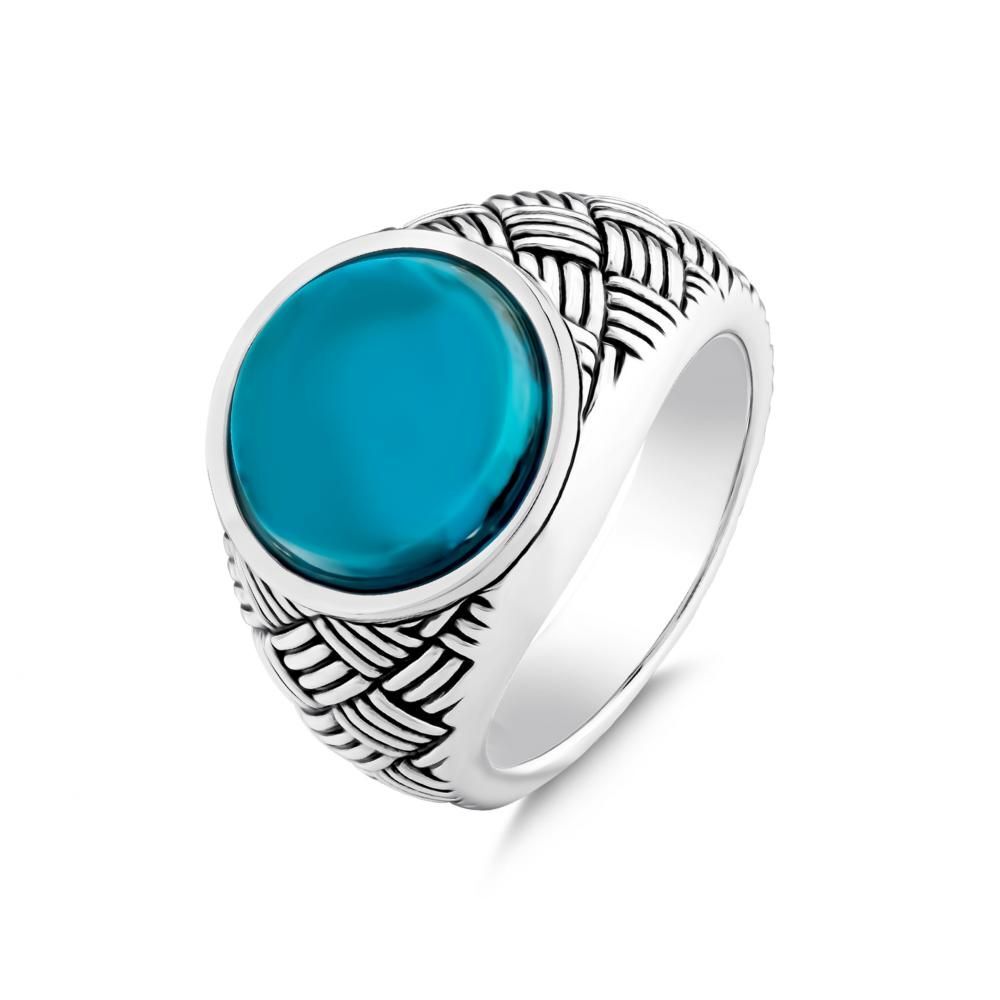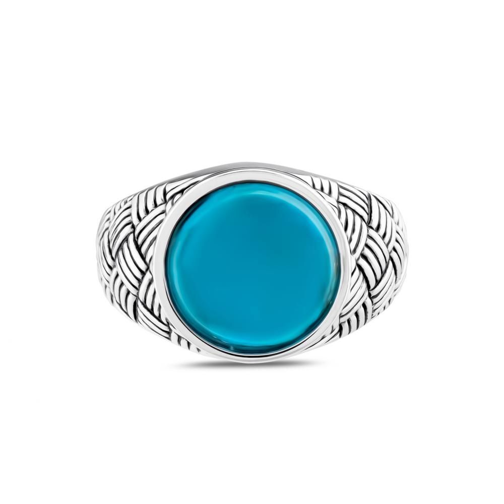 Bravoman Turkuaz Taşlı Yuvarlak Gümüş Yüzük