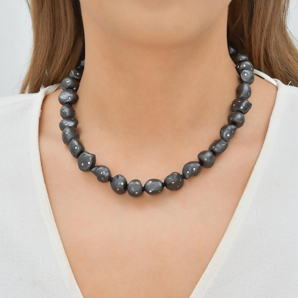 Clouds Amorf Siyah Renk Gümüş Kolye