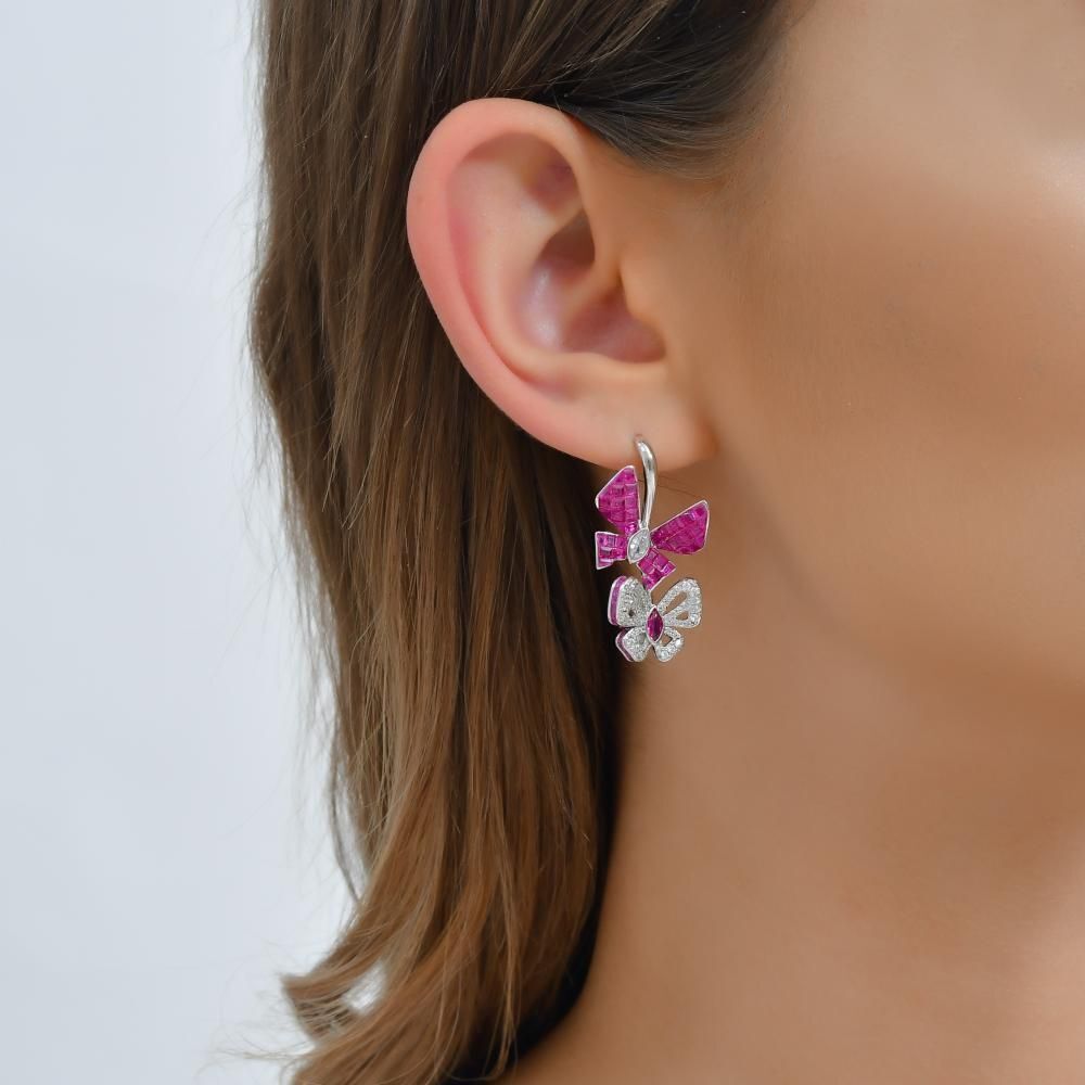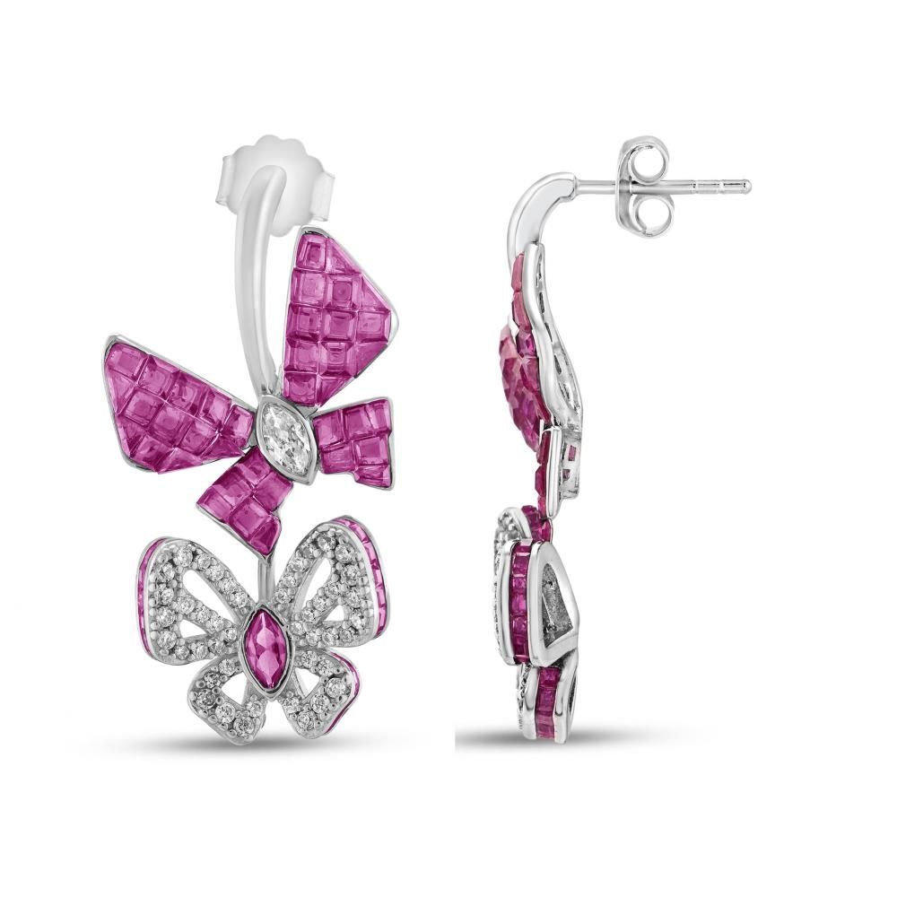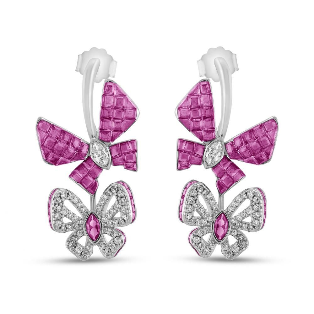 Eclat Pembe Kelebekli Gümüş Küpe