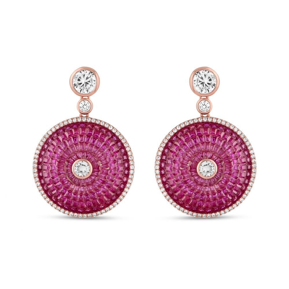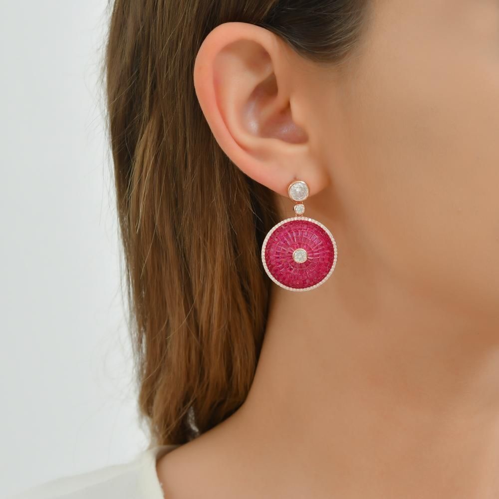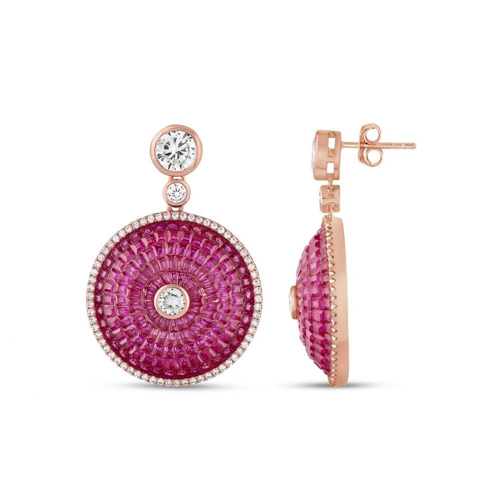Eclat Pembe Yuvarlak Rose Altın Renkli Gümüş Küpe