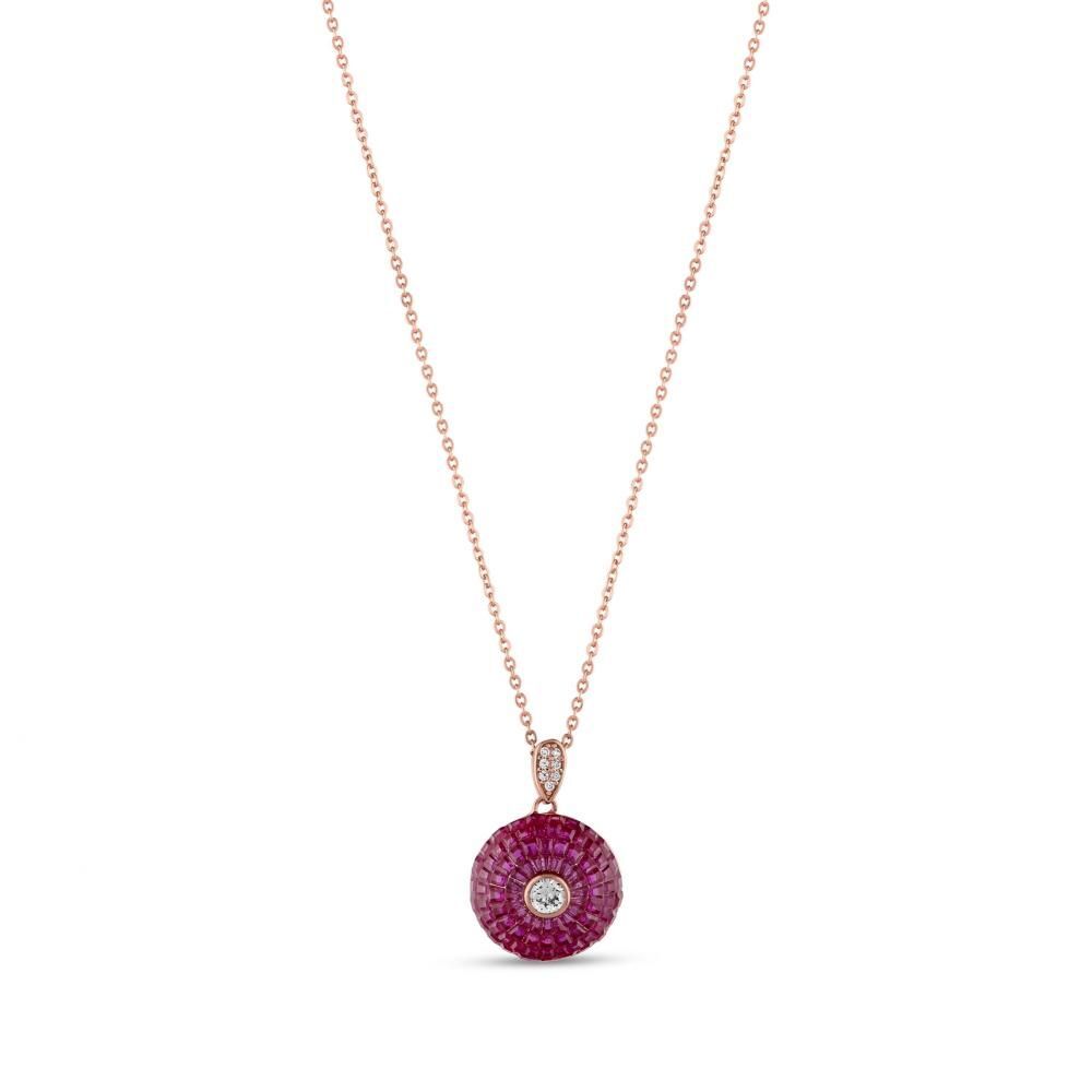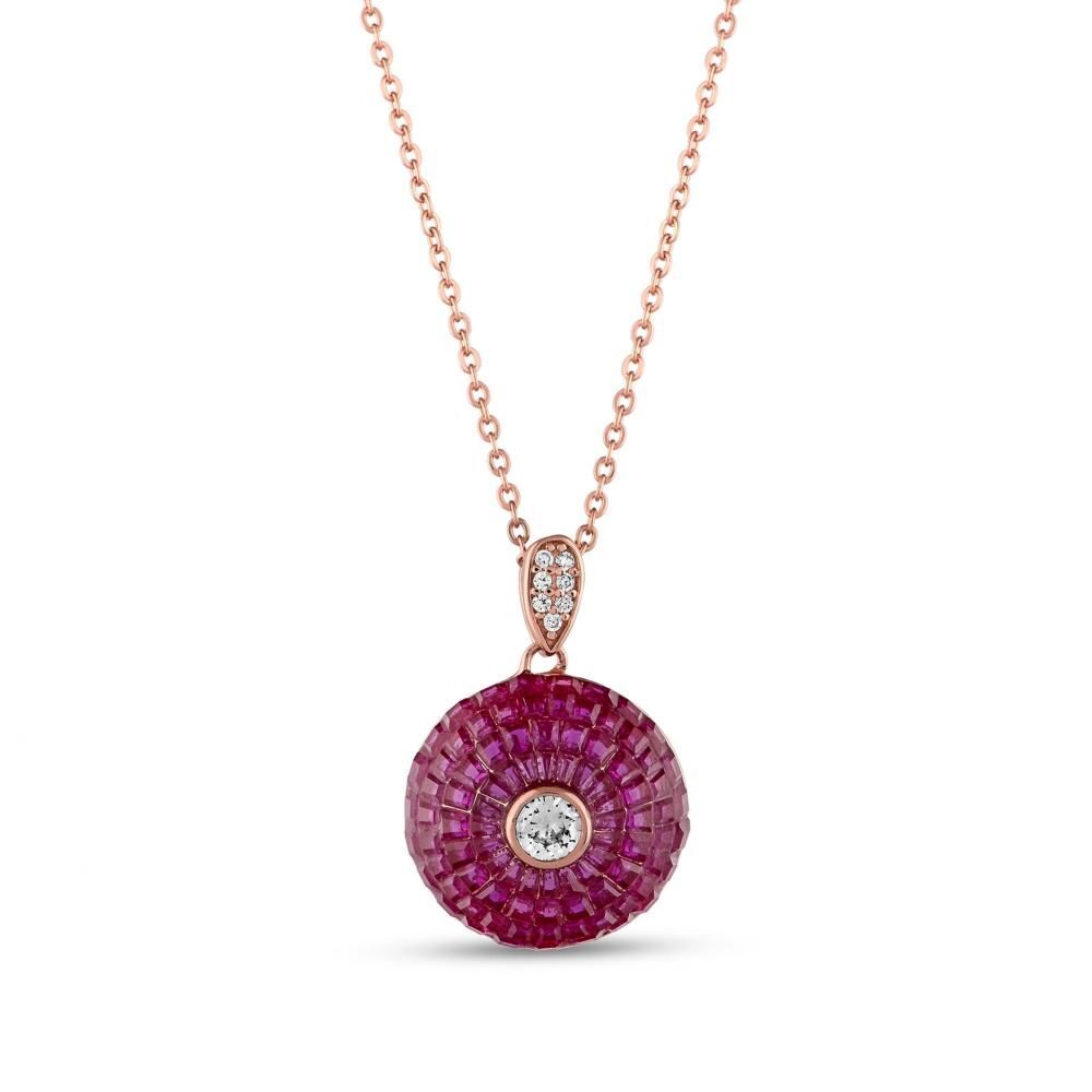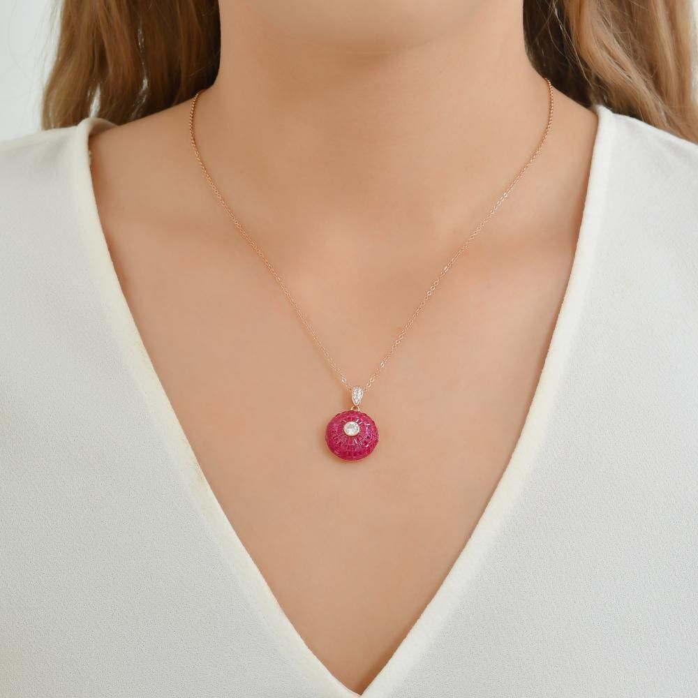 Eclat Pembe Yuvarlak Rose Altın Renkli Küçük Boy Gümüş Kolye