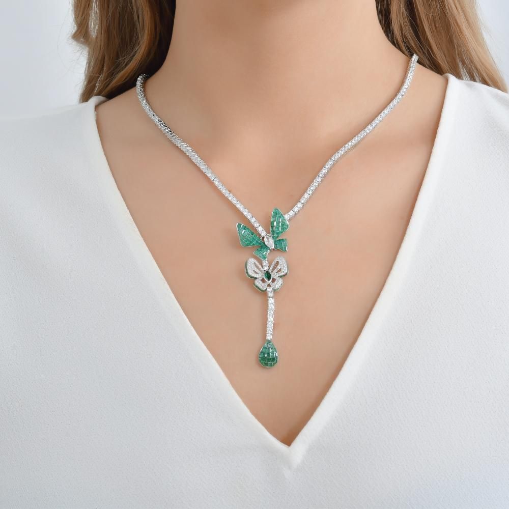 Eclat Yeşil Kelebekli Gümüş Kolye