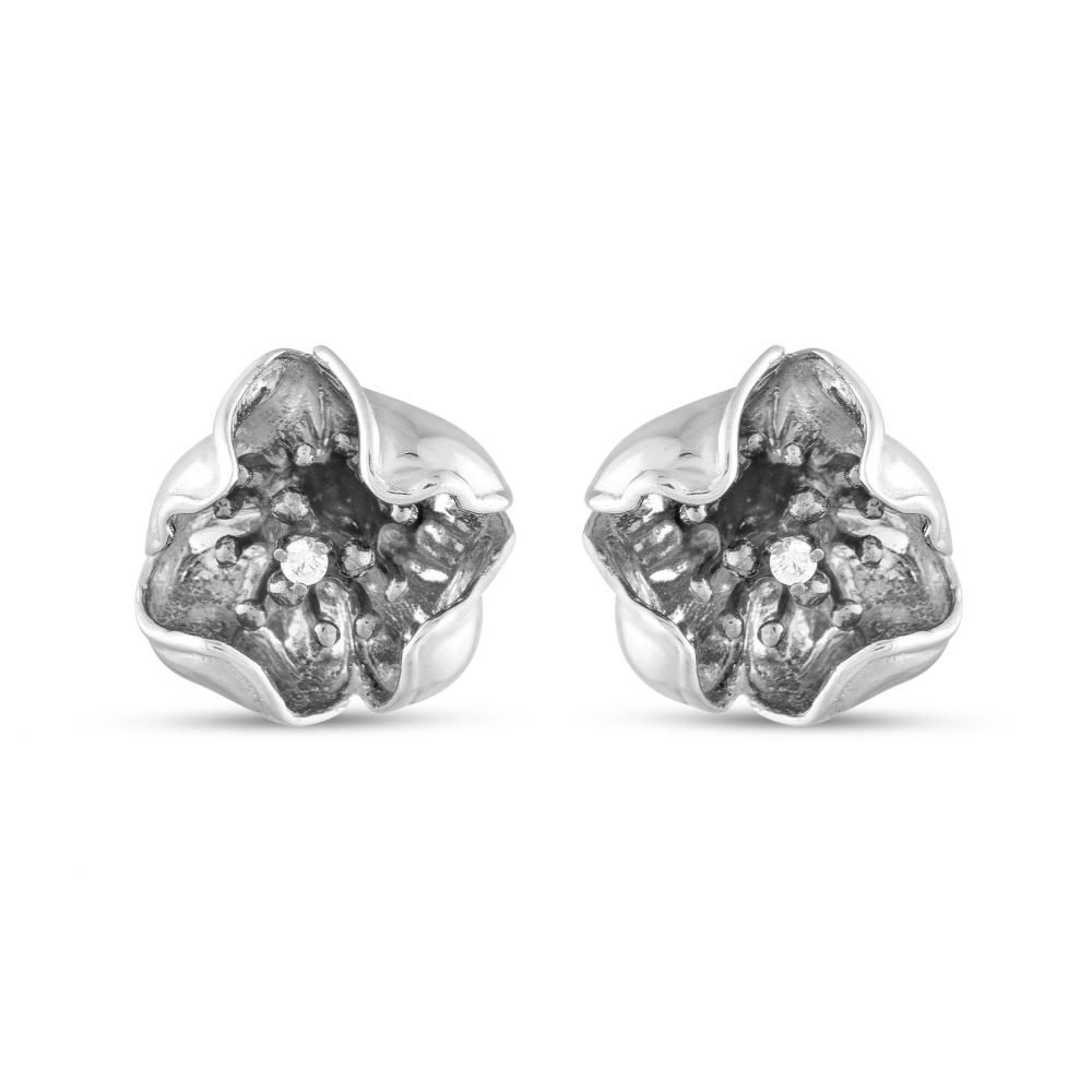 Gallica Çok Yapraklı Gül Modeli Gümüş Küpe