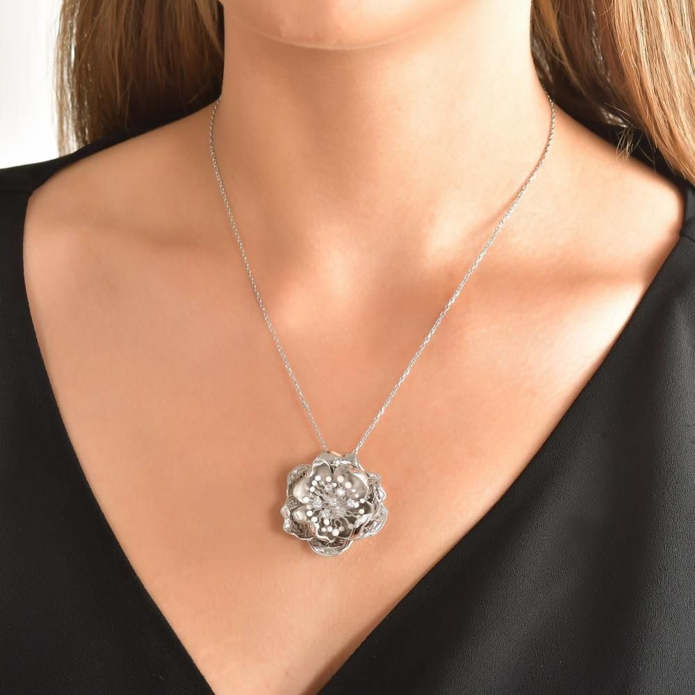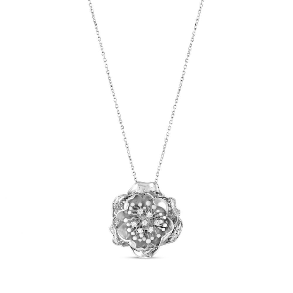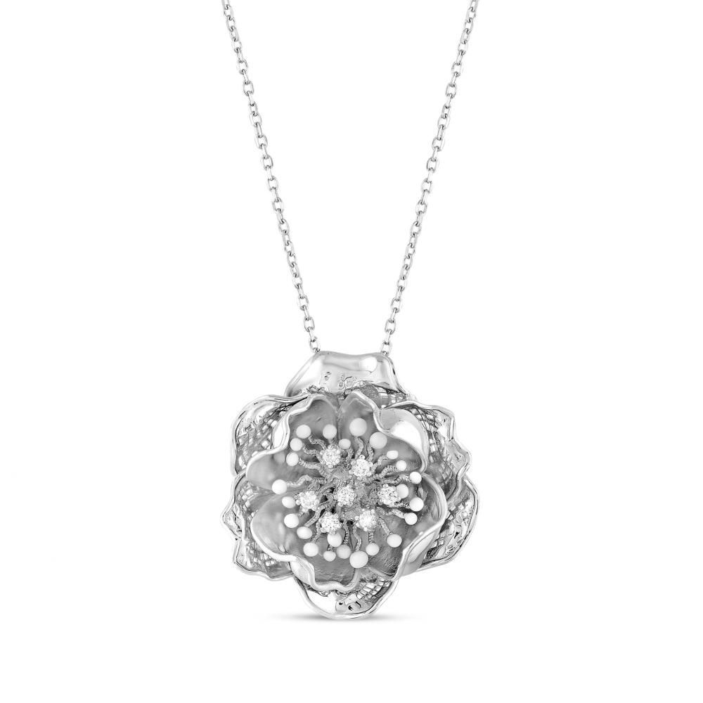 Gallica Çok Yapraklı Mine Tohumlu Gül Modeli Gümüş Kolye