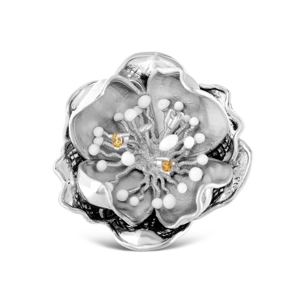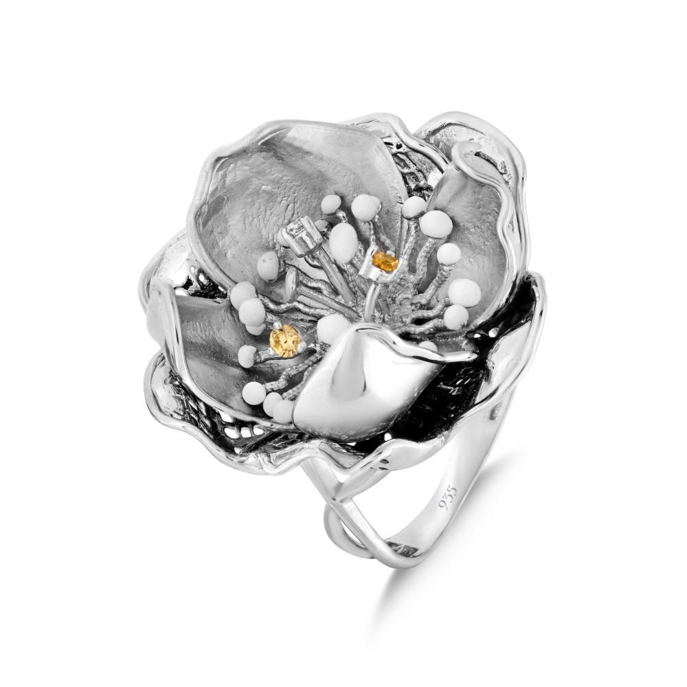 Gallica Çok Yapraklı Mine Tohumlu Gül Modeli Gümüş Yüzük