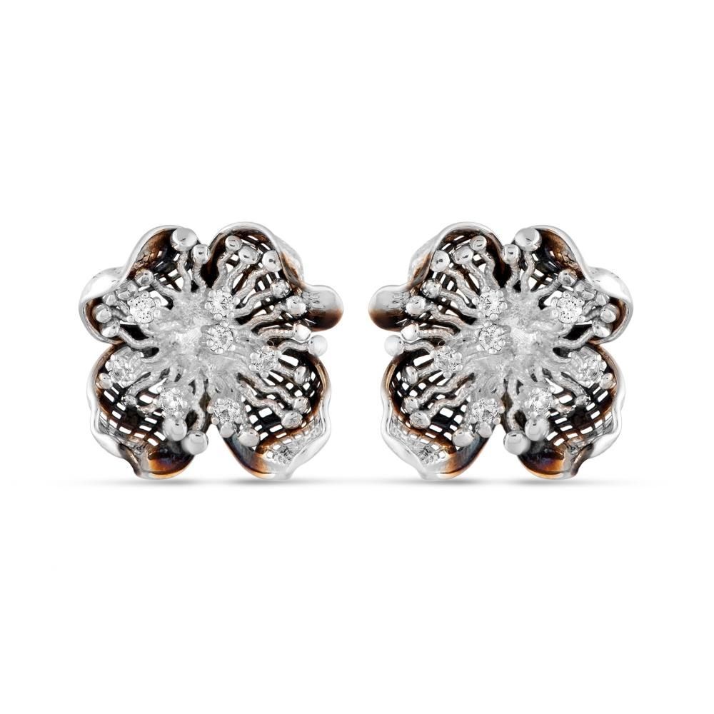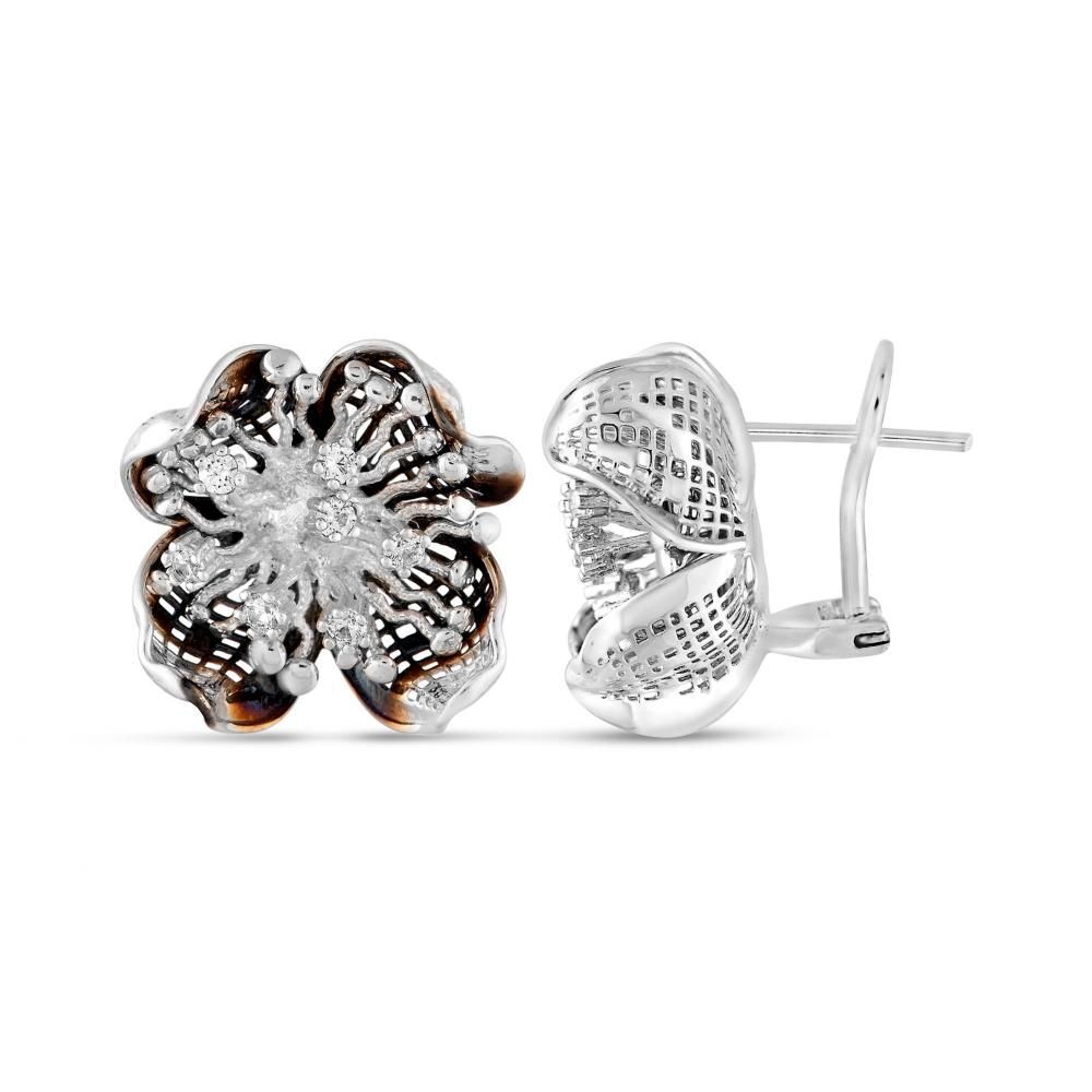 Gallica Delik Yapraklı Gül Modeli Gümüş Küpe