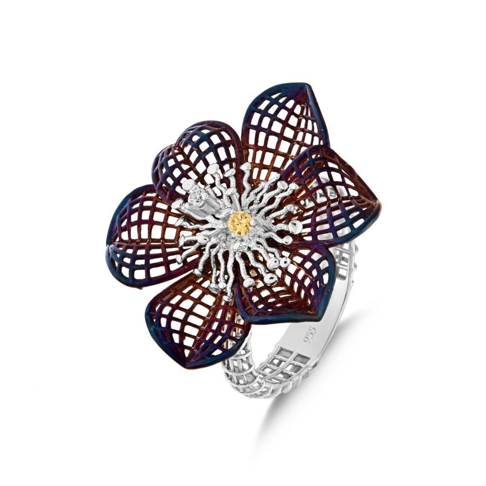 Gallica Delik Yapraklı Saçak Tohumlu Gümüş Yüzük
