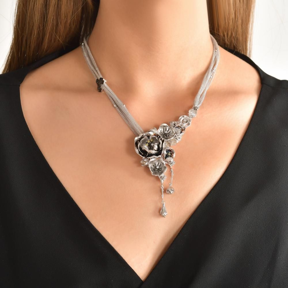 Gallica Gül Modeli Kazayağı Gümüş Kolye