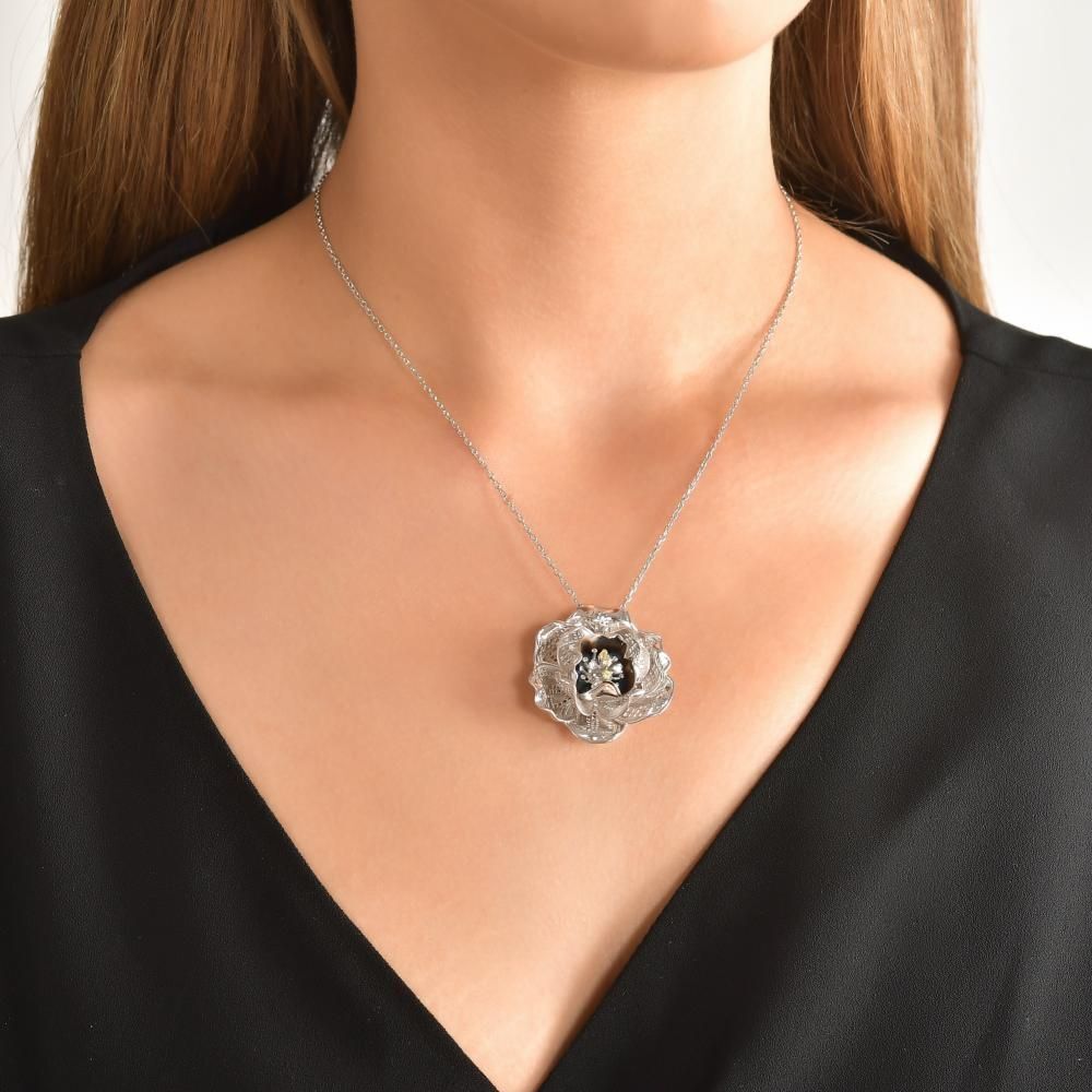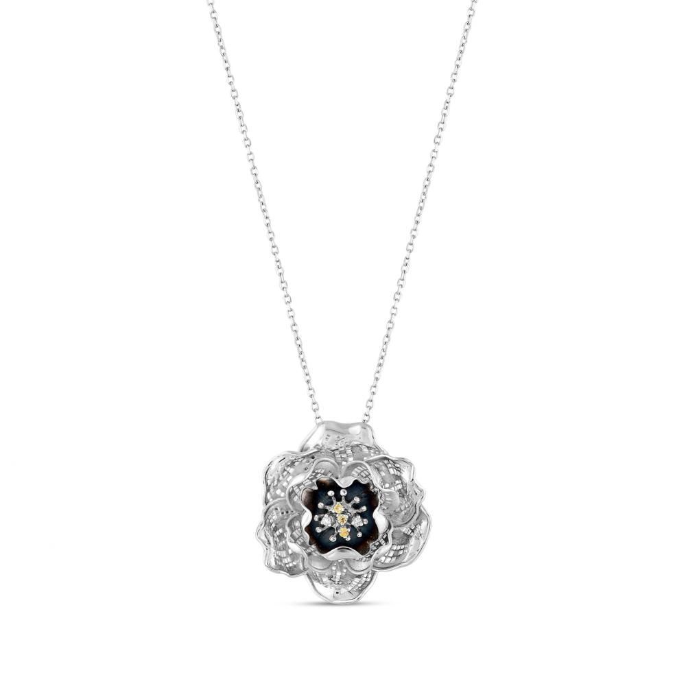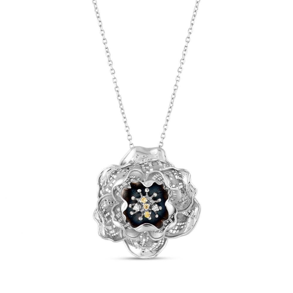 Gallica Sarı-Beyaz Tohumlu Gül Model Gümüş Kolye