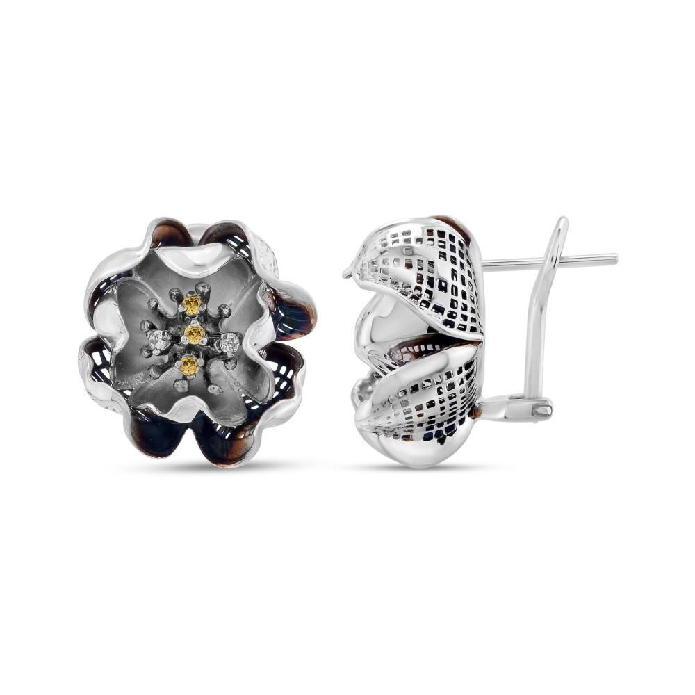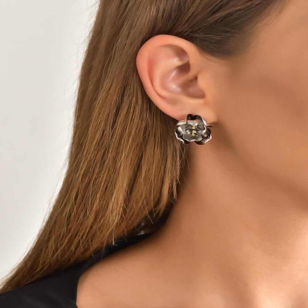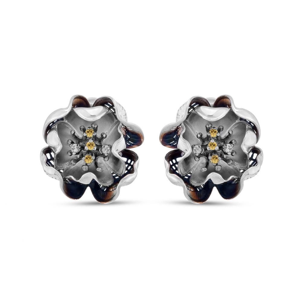 Gallica Sarı-Beyaz Tohumlu Gül Model Gümüş Küpe