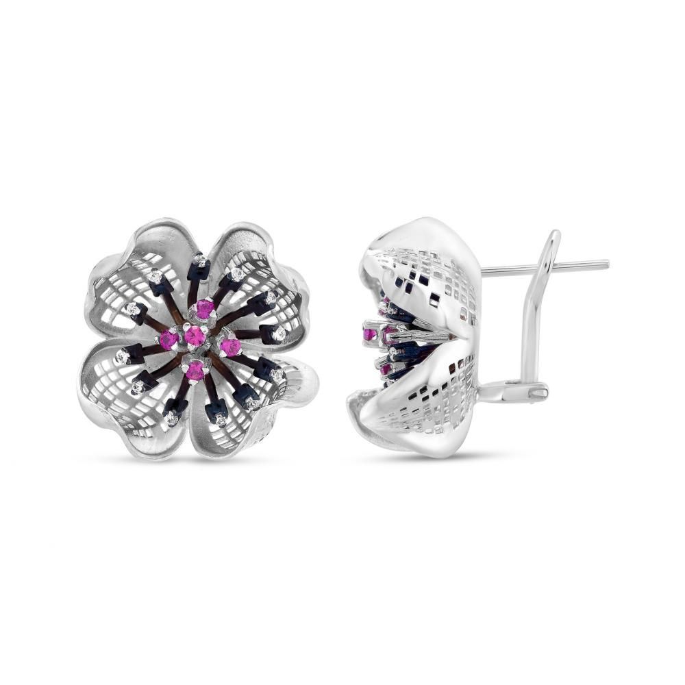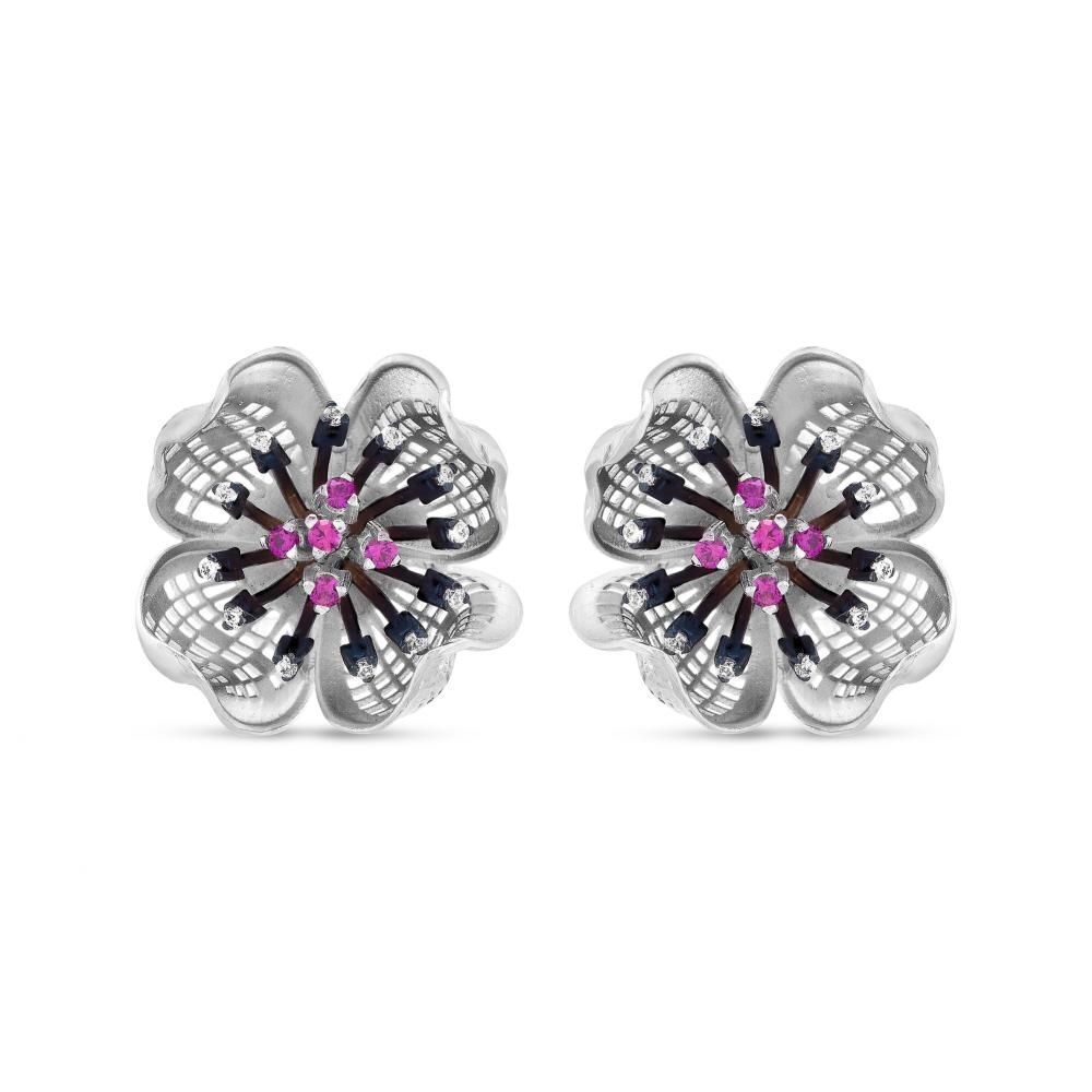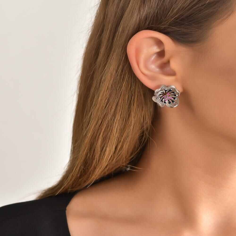 Gallica Siyah-Pembe Tohumlu Gül Model Gümüş Küpe