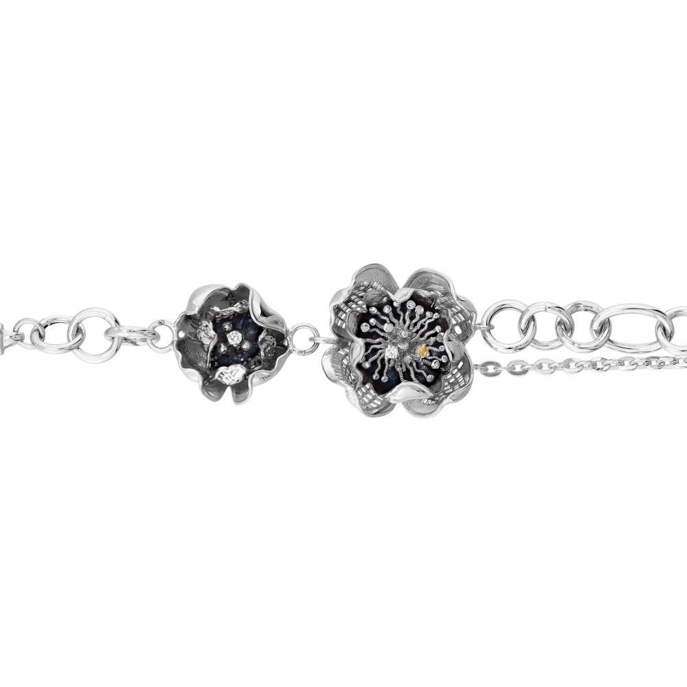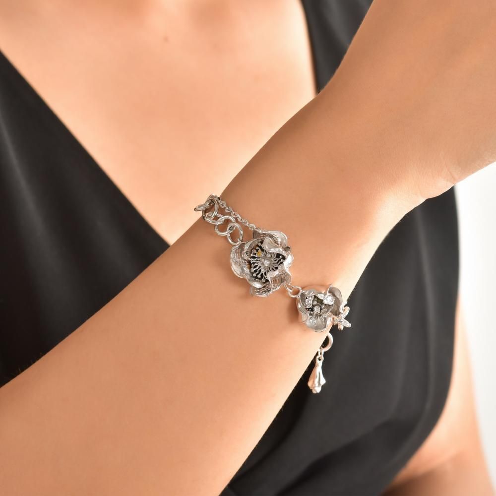 Gallica Üç Yapraklı Gül Model Gümüş Bileklik