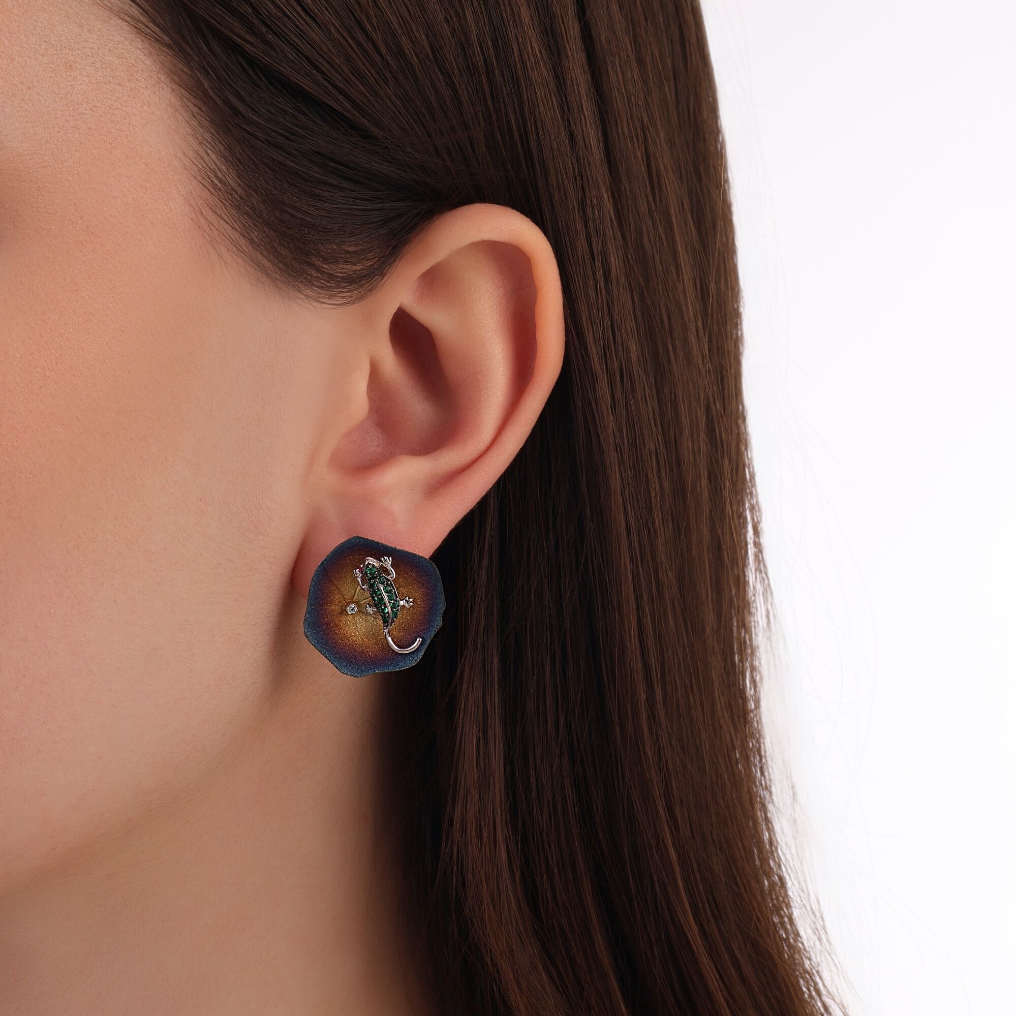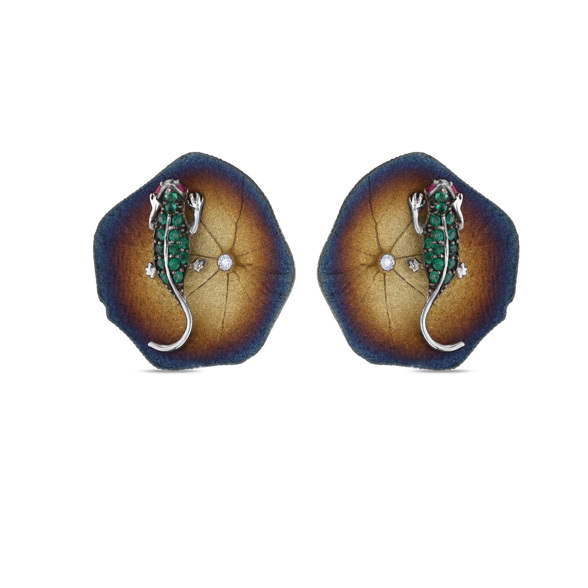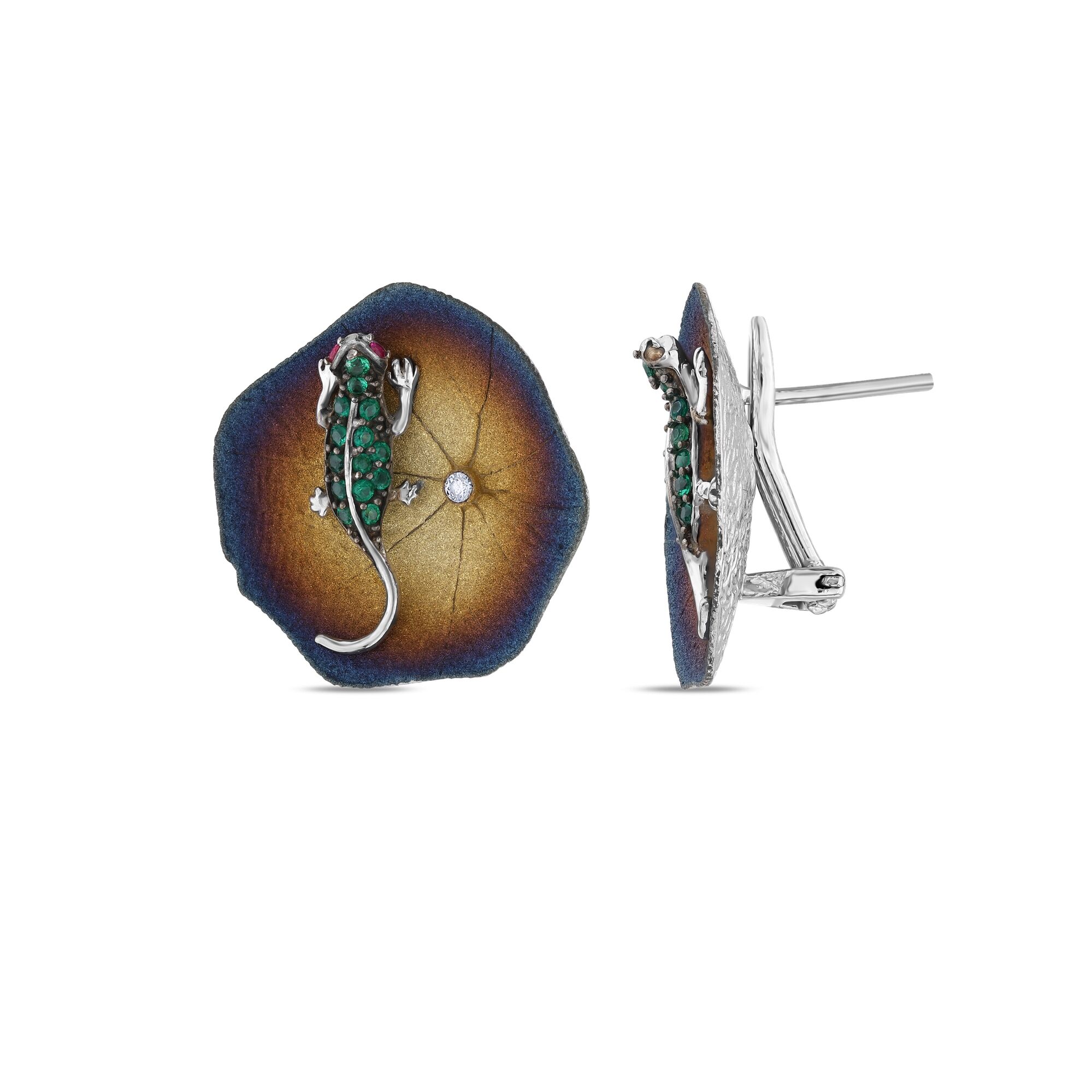 Global Warming Yeşil Kertenkele Gümüş Küpe