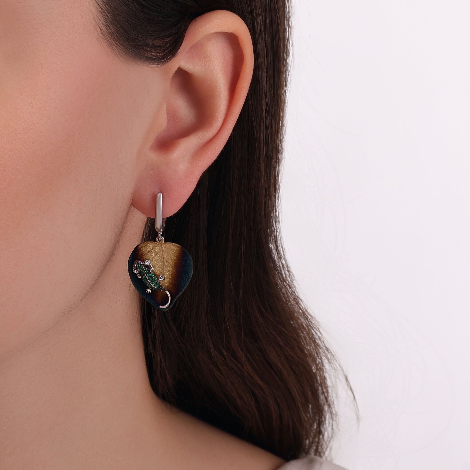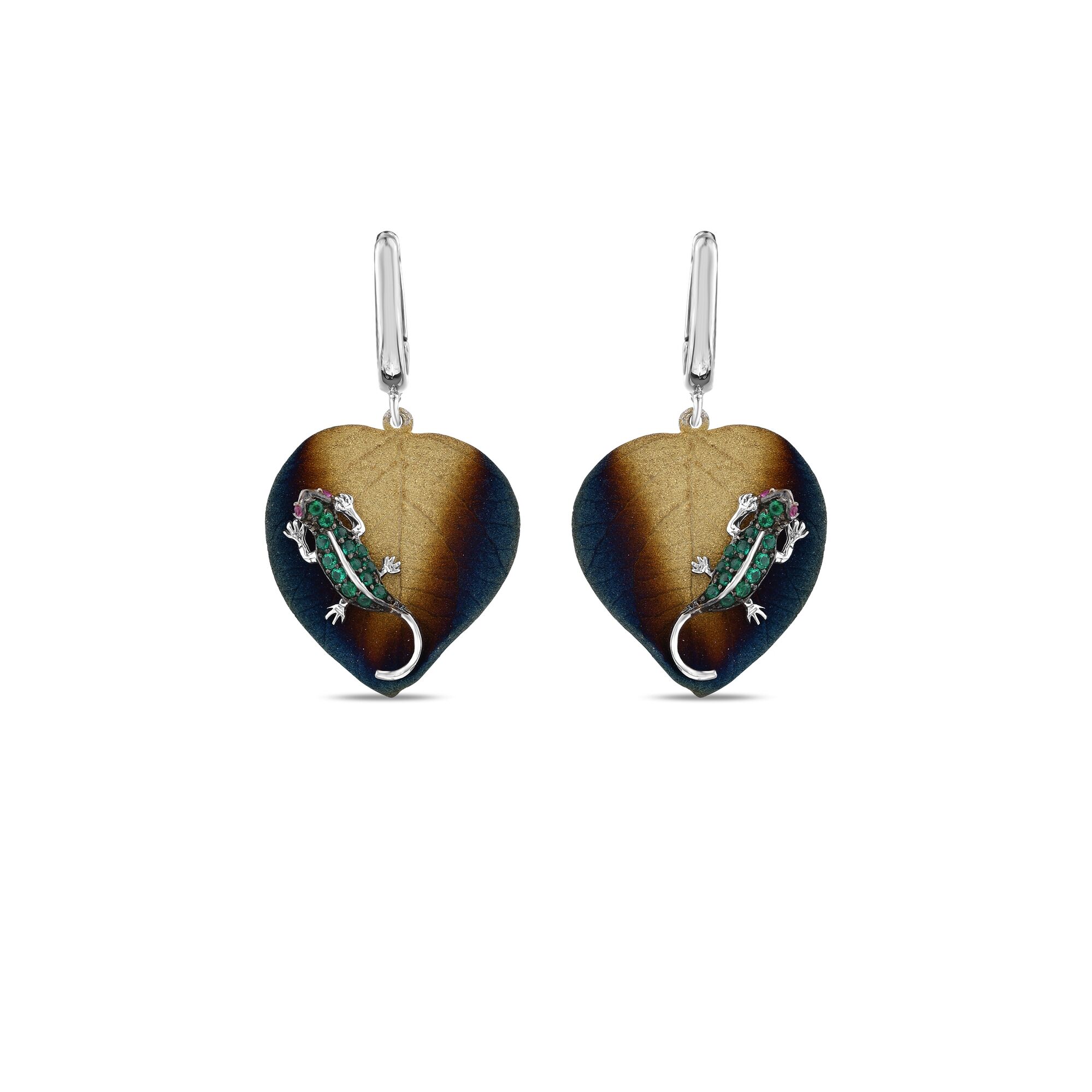 Global Warming Yeşil Kertenkele Gümüş Küpe
