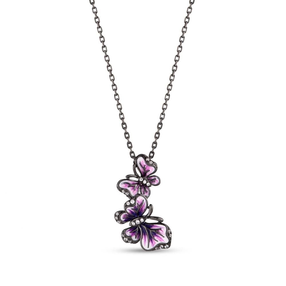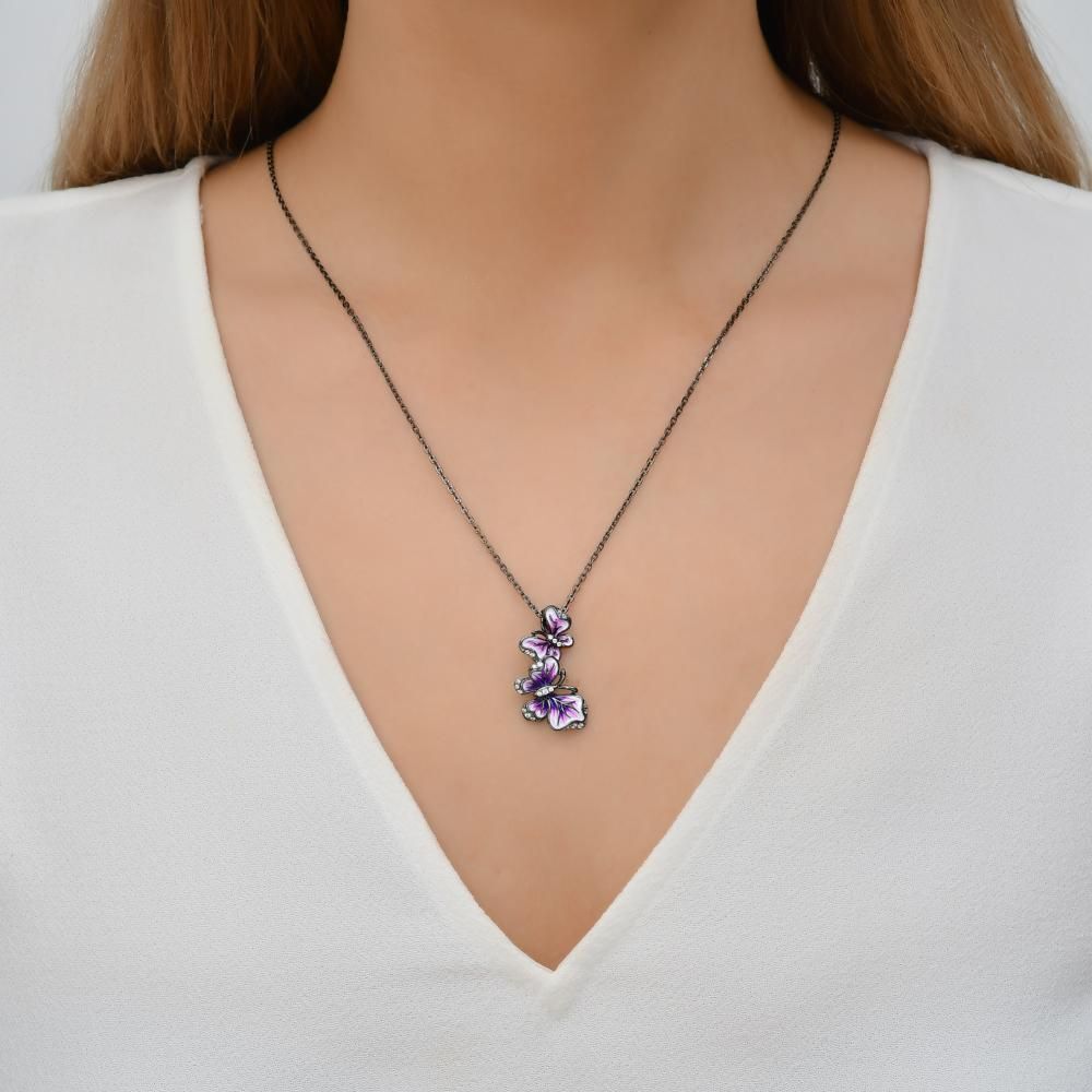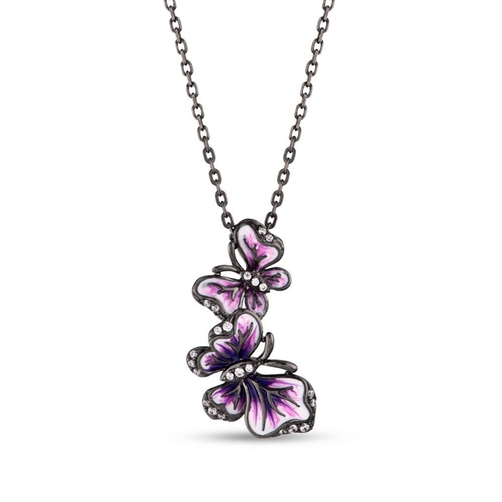 Heaven Koleksiyonu Kelebek Tasarımlı Taşlı Gümüş Kolye