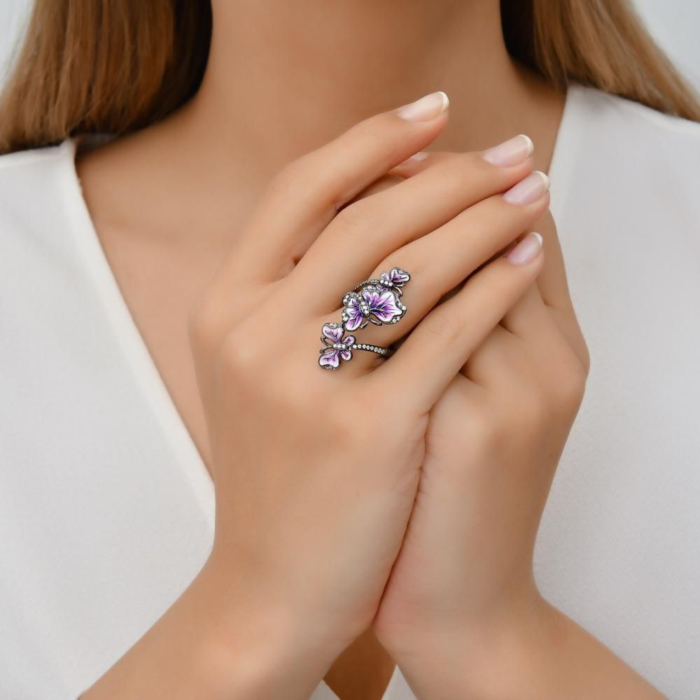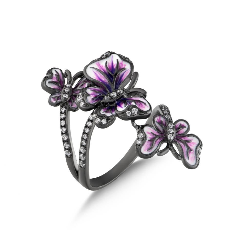 Heaven Koleksiyonu Kelebek Tasarımlı Taşlı Gümüş Yüzük