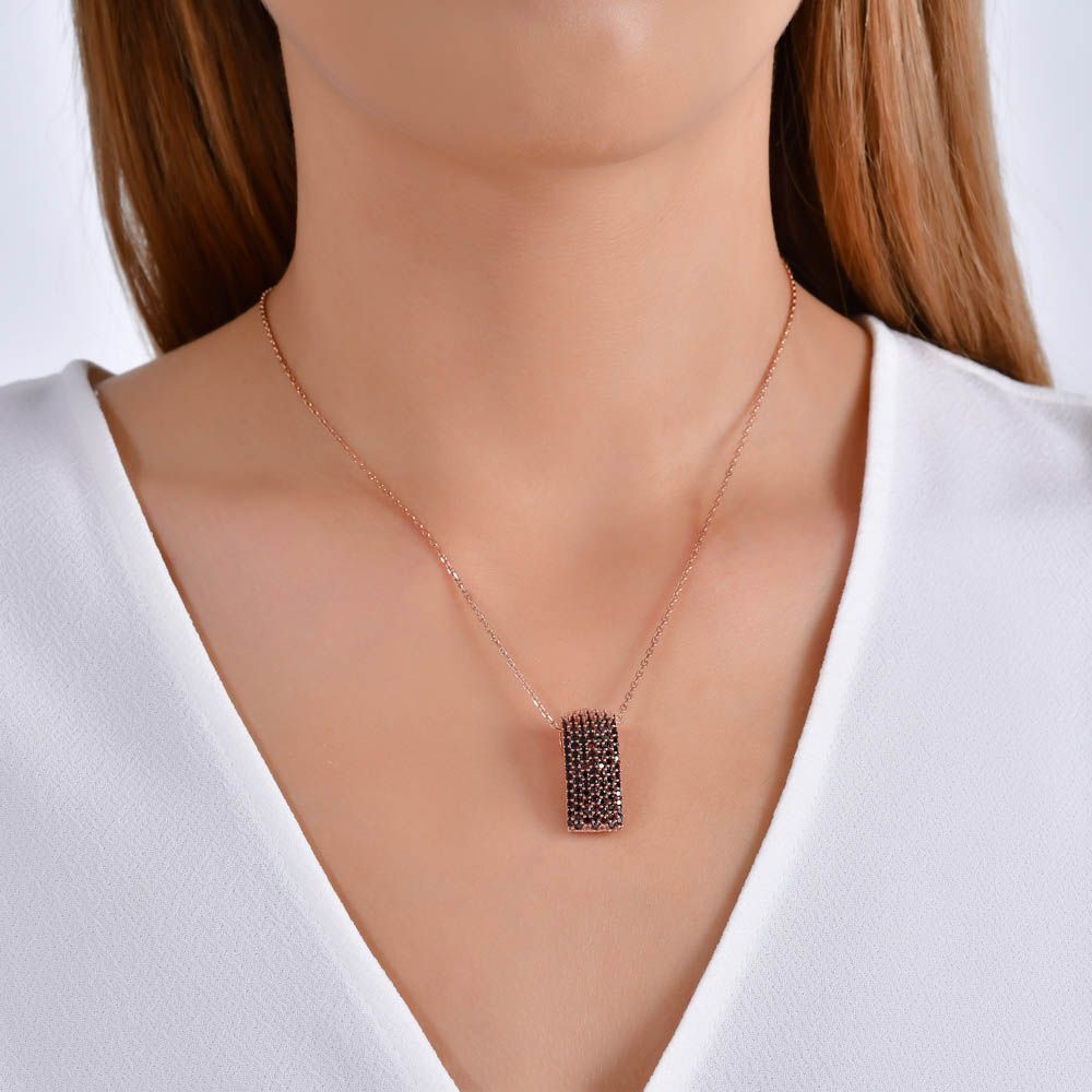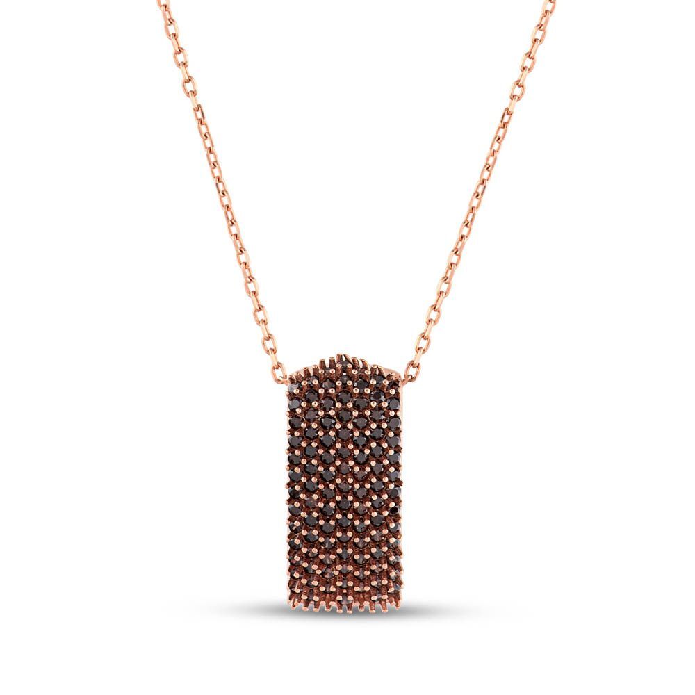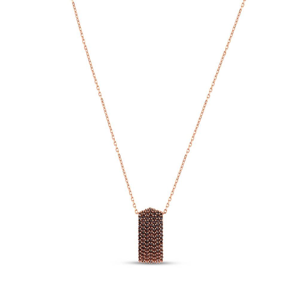 Hedgehog Kahverengi Bombeli Dikdörtgen Tasarımlı Altın Renkli Gümüş Kolye