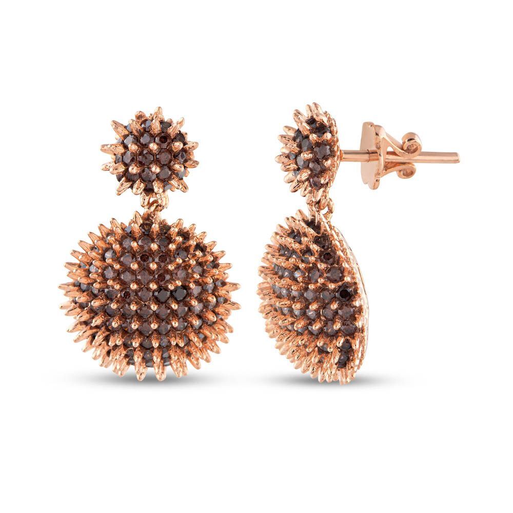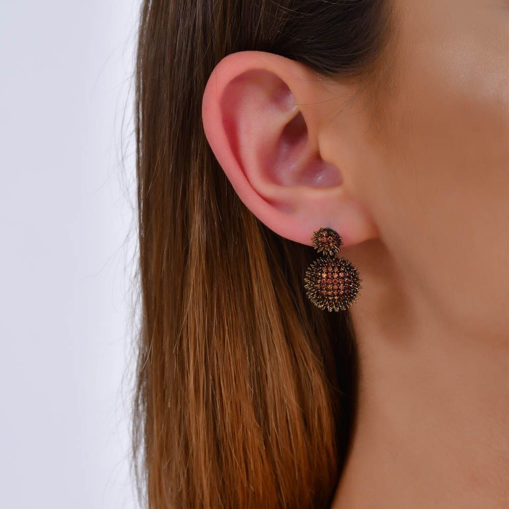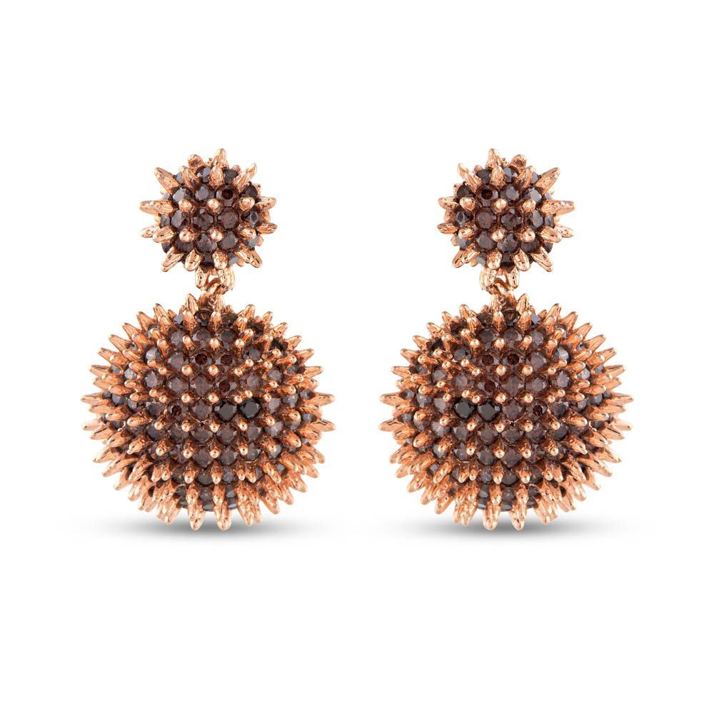 Hedgehog Kahverengi Yarım Top-Altı Düz Rose Altın Renkli Gümüş Küpe