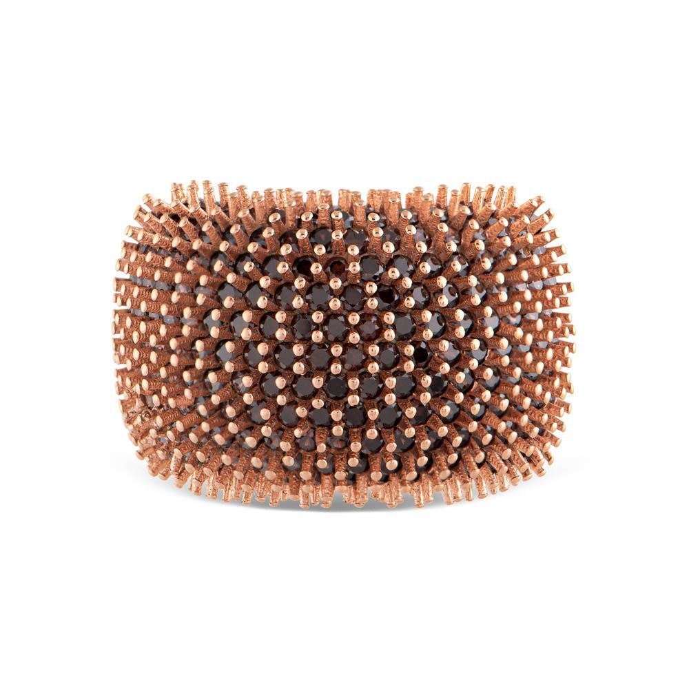 Hedgehog Kahverengi Yarımtur Rose Altın Renkli Gümüş Yüzük