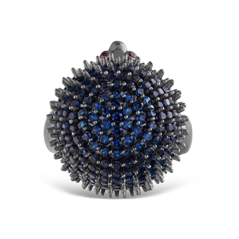 Hedgehog Mavi Kirpi Tasarımlı Rodajlı Gümüş Yüzük