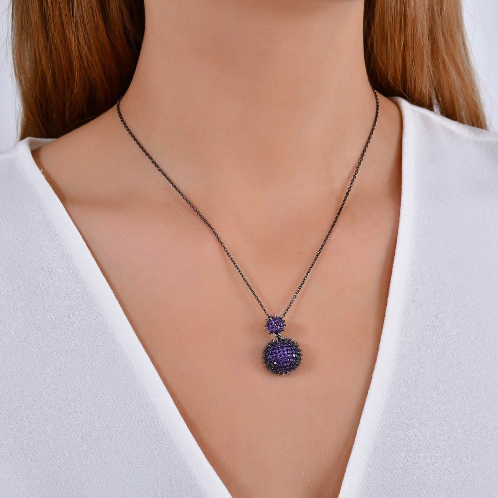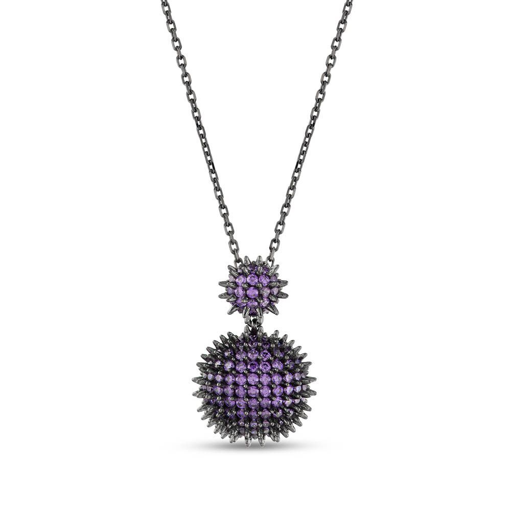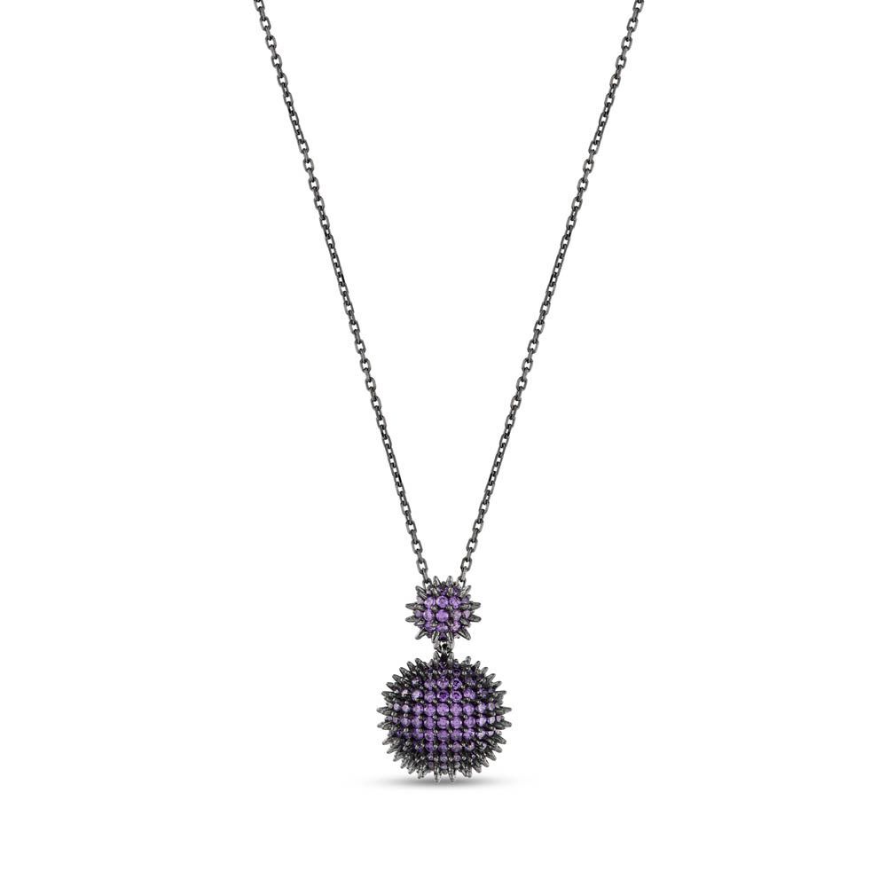 Hedgehog Mor Yarım Top-Altı Düz Rodajlı Gümüş Kolye