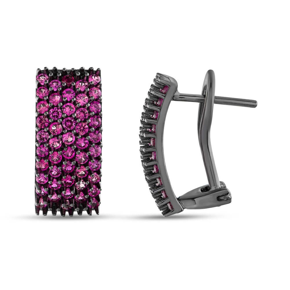 Hedgehog Pembe Bombeli Dikdörtgen Tasarımlı Rodajlı Gümüş Küpe