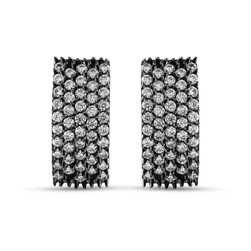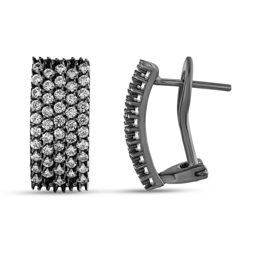 Hedgehog Siyah Bombeli Dikdörtgen Tasarımlı Rodajlı Gümüş Küpe