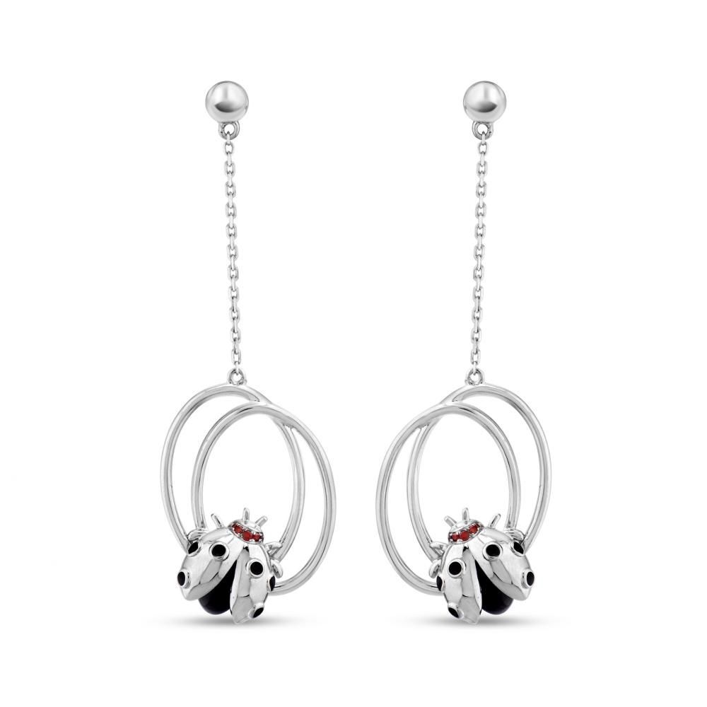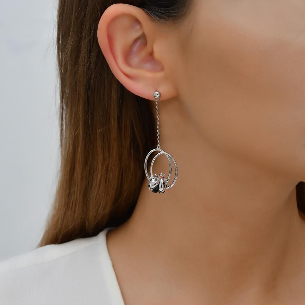 Ladybee Uğurböceği ve Halka Tasarımlı Gümüş Küpe