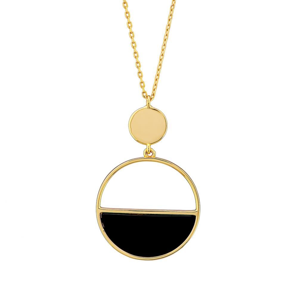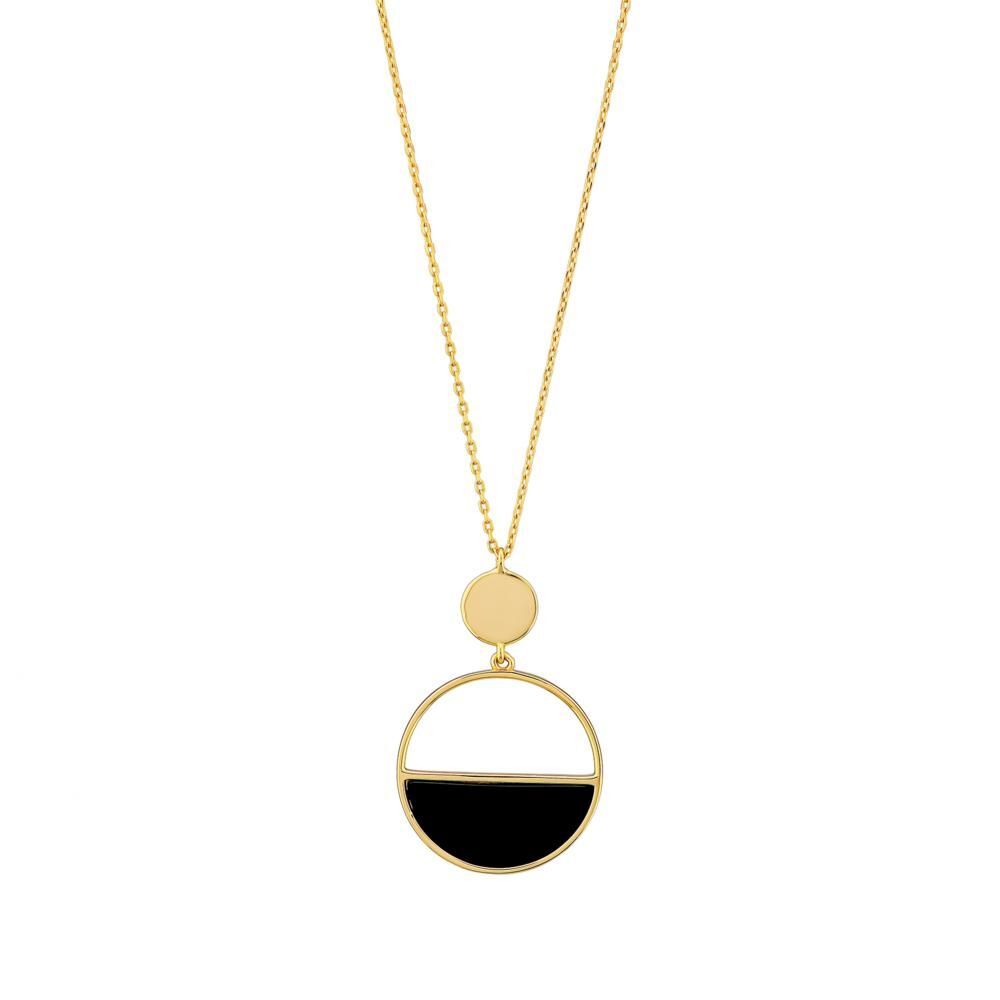 Lucky Gems Model-5 Oniks Taşlı Altın Renkli Gümüş Kolye