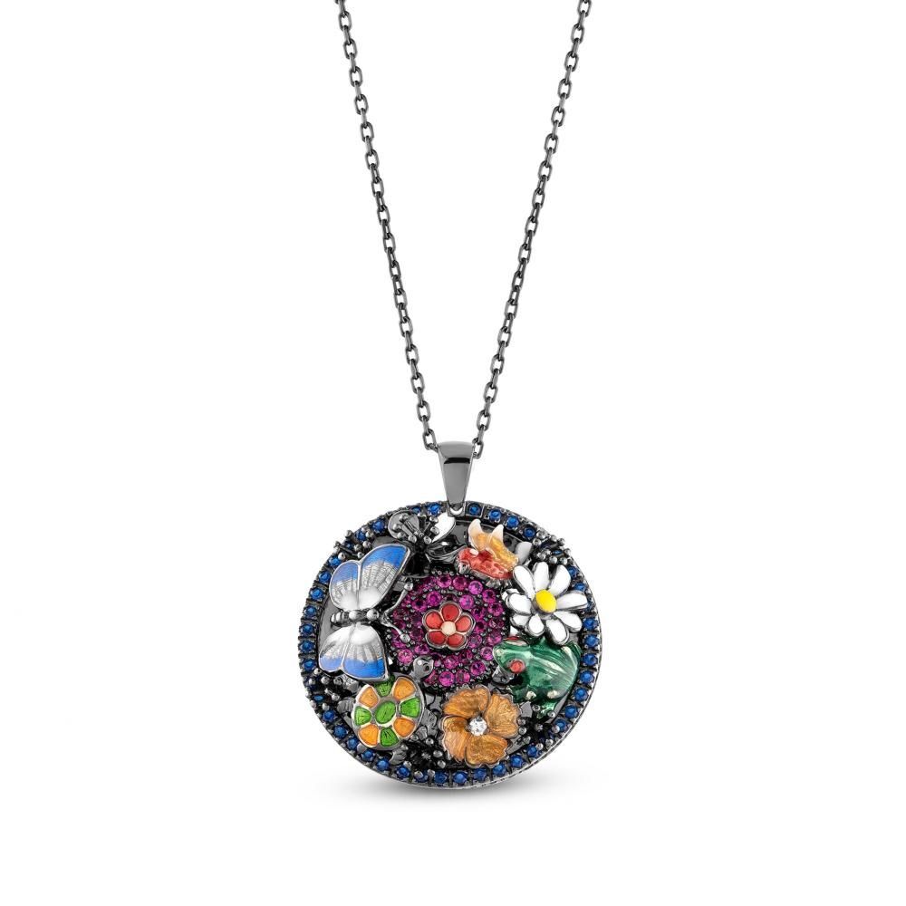Night Cennet Bahçesi Model-4 Zincirli Gümüş Kolye