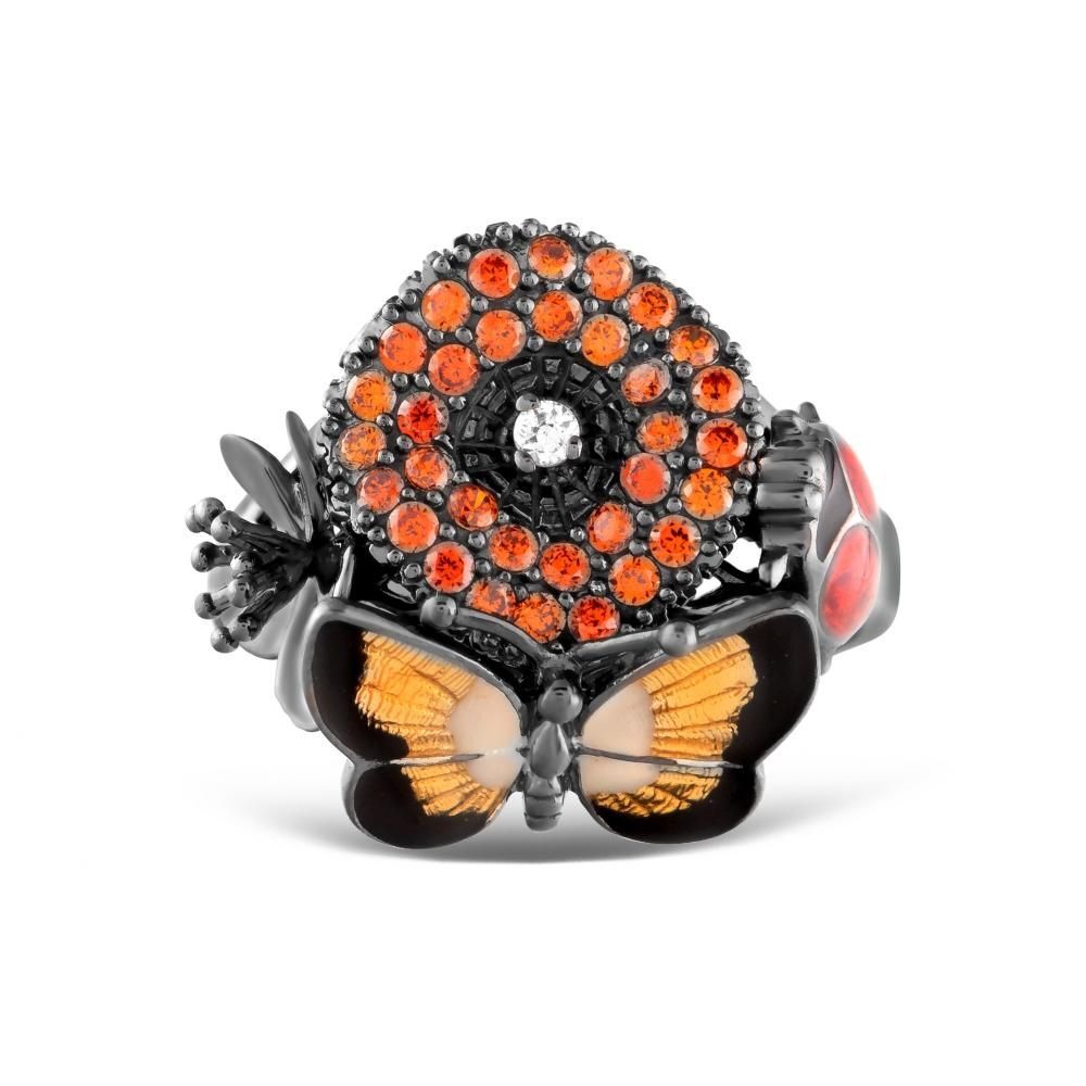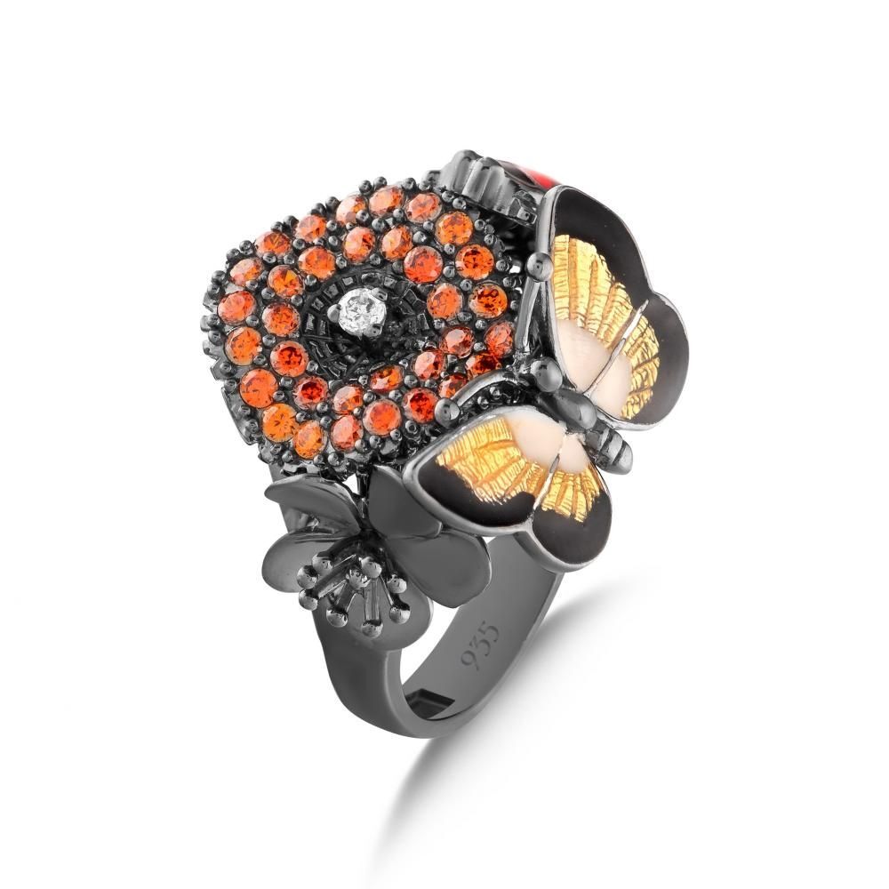 Night Paveli Kahverengi Kelebek Tasarımlı Gümüş Yüzük