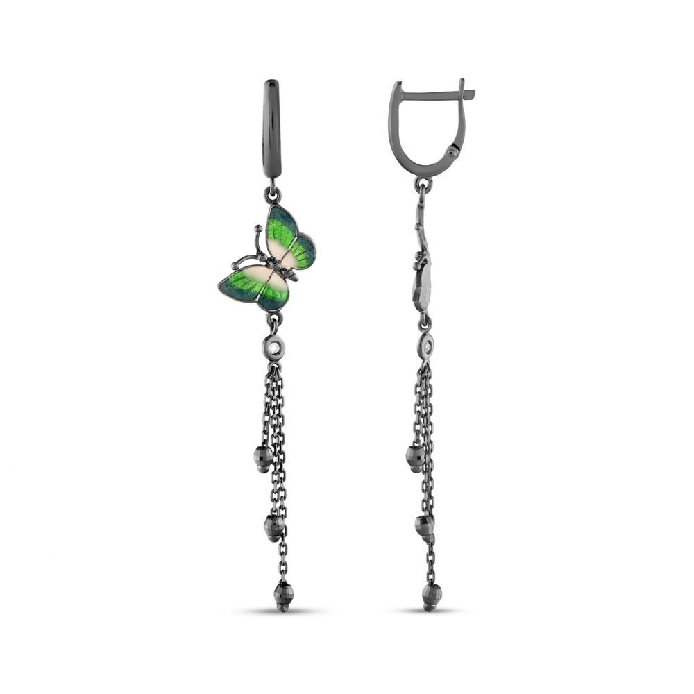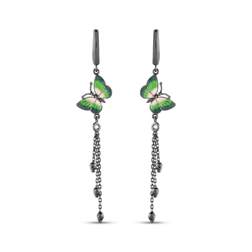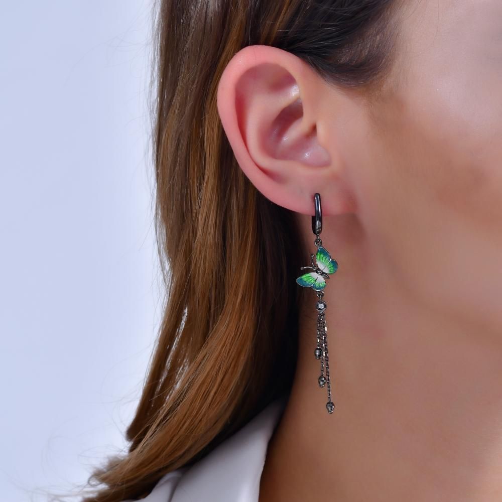 Night Yeşil Kelebek Tasarımlı Askılı Gümüş Küpe