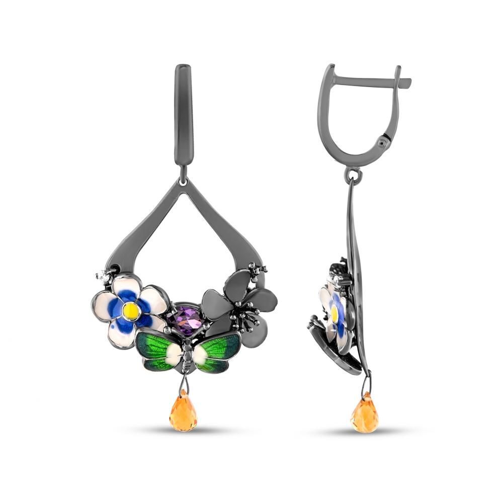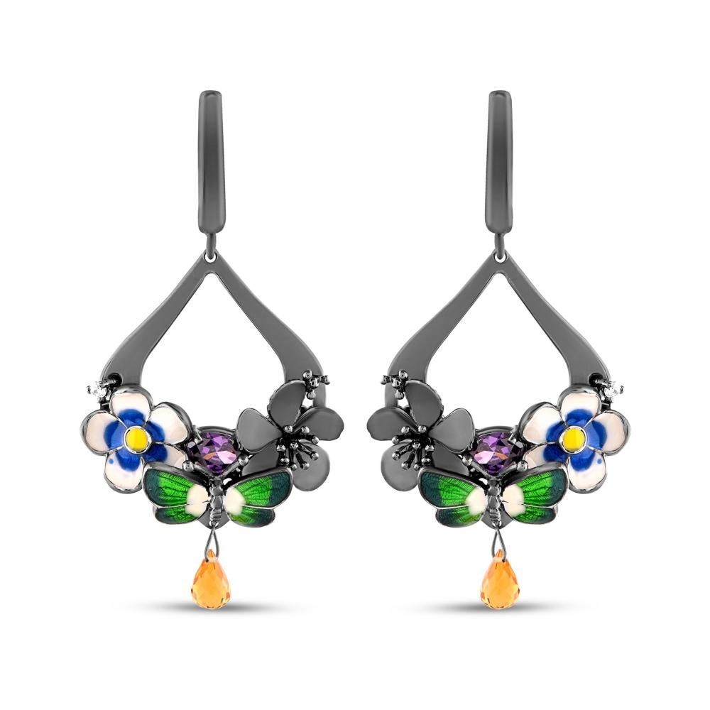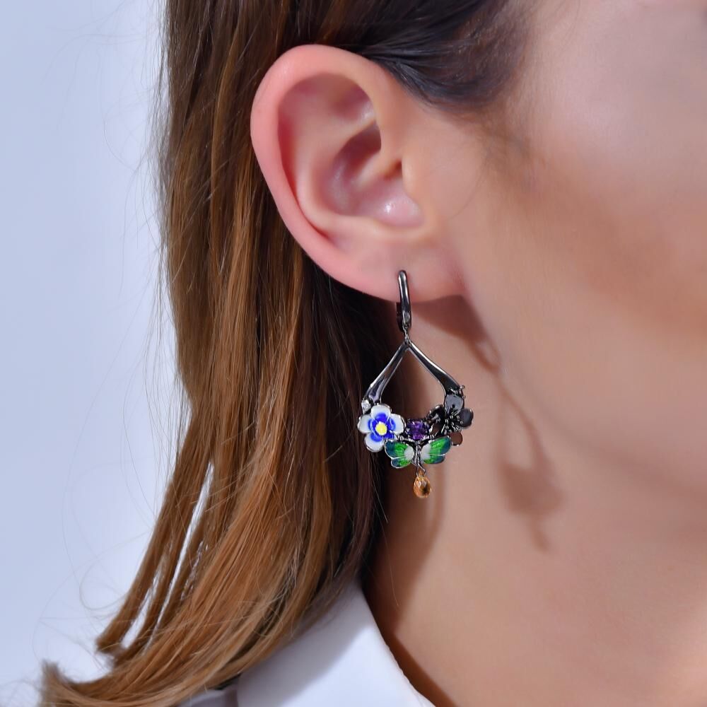 Night Yeşil Kelebek Tasarımlı Damla Model Sitrin Taşlı Gümüş Küpe