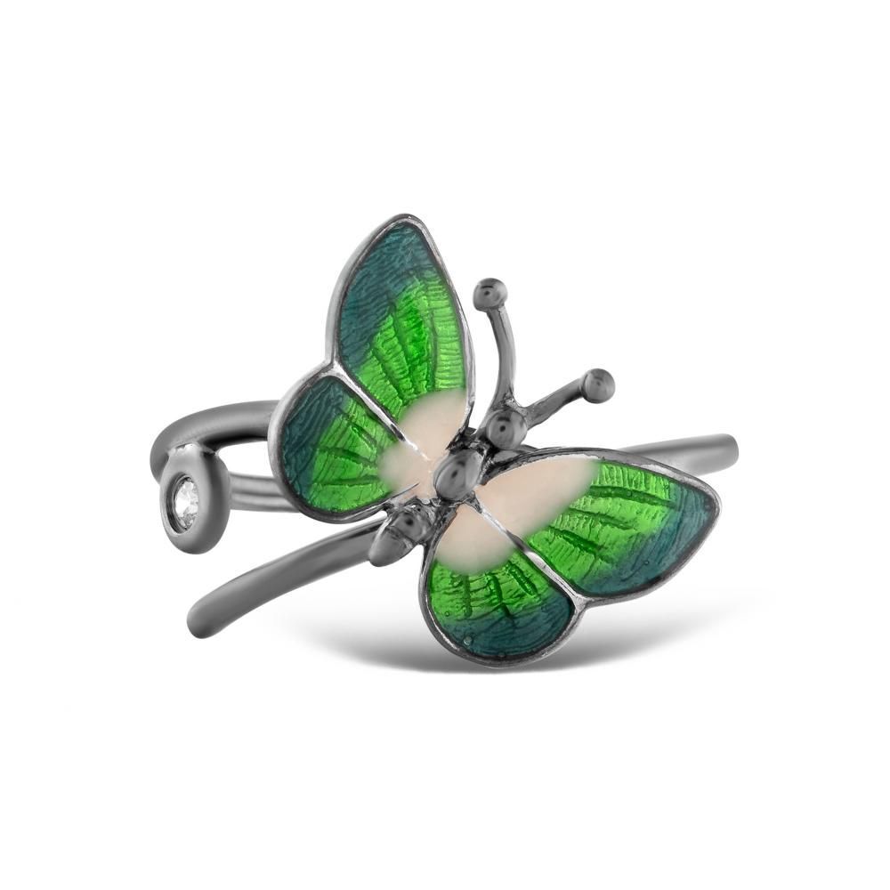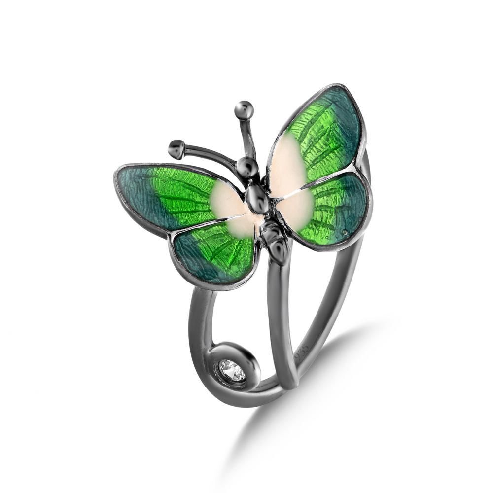 Night Yeşil Kelebek Tasarımlı Gümüş Yüzük