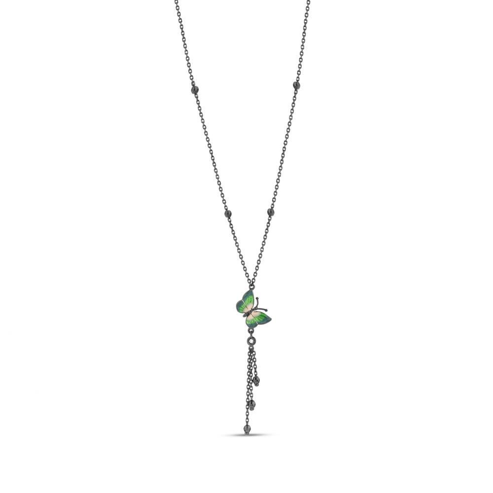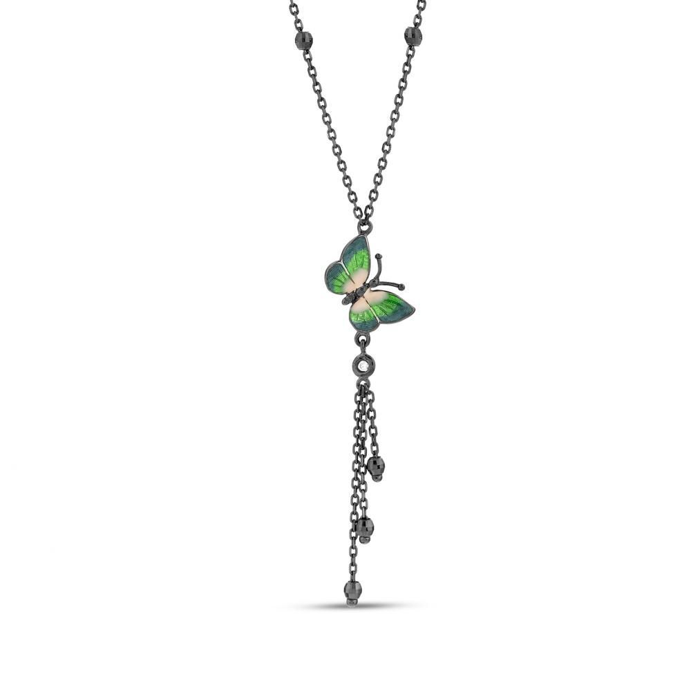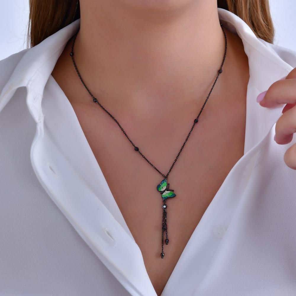 Night Yeşil Kelebek Tasarımlı Zincirli Gümüş Kolye