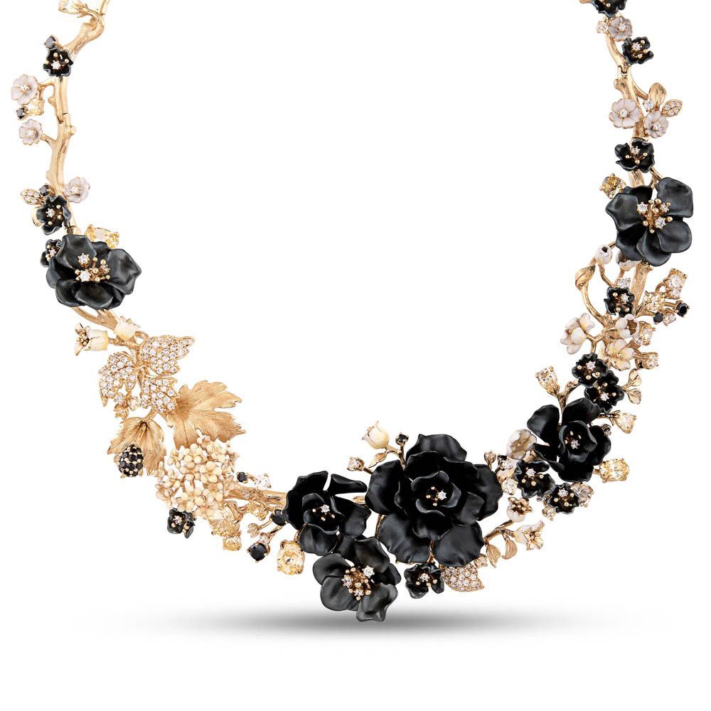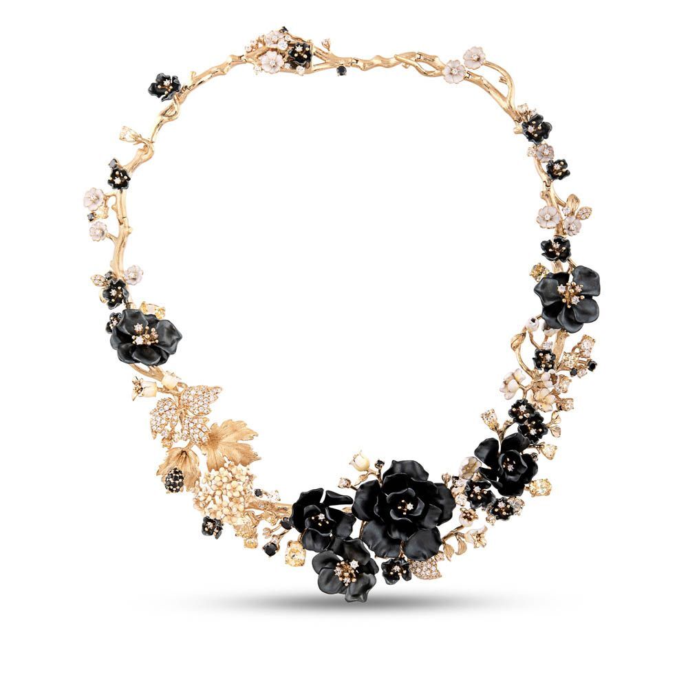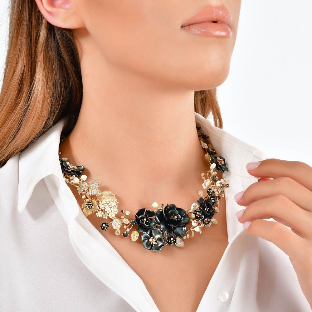 Primrose Siyah Çiçek Tasarımlı Model-2 Mineli Gümüş Kolye