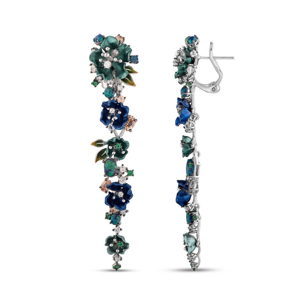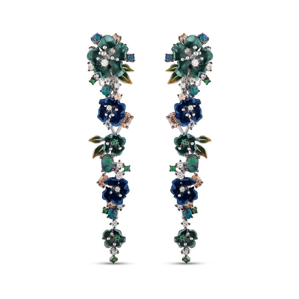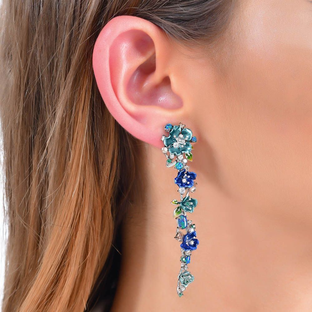 Primrose Yeşil Çiçek Tasarımlı Model-1 Mineli Gümüş Küpe