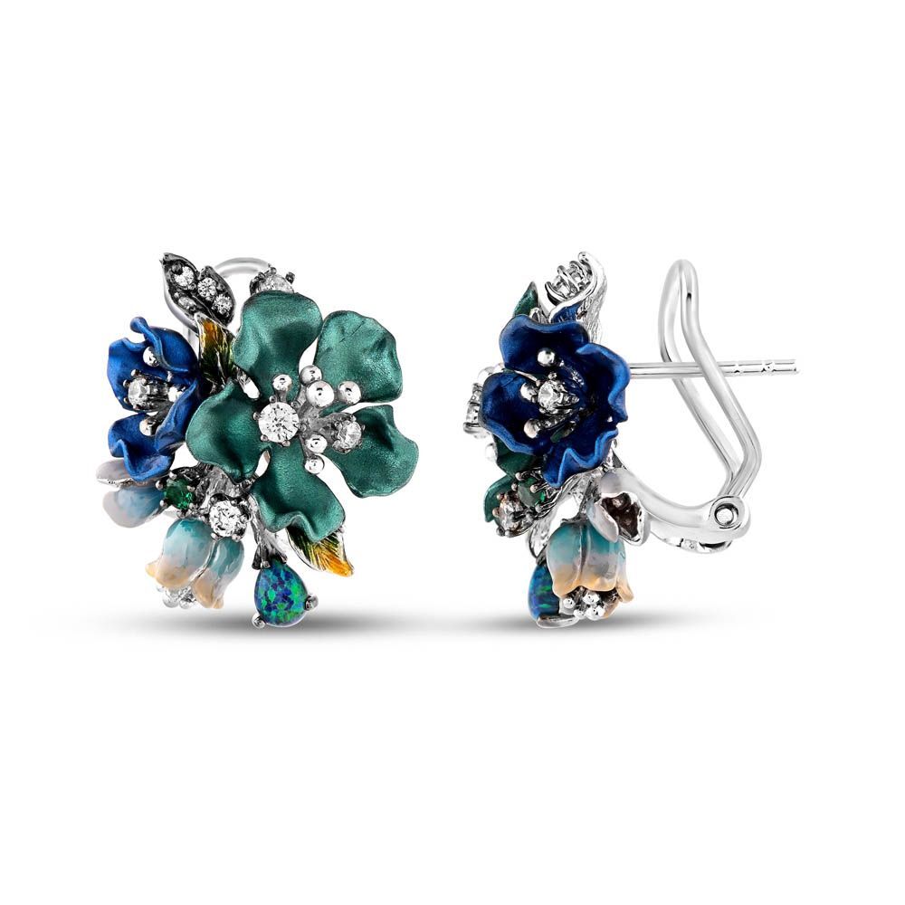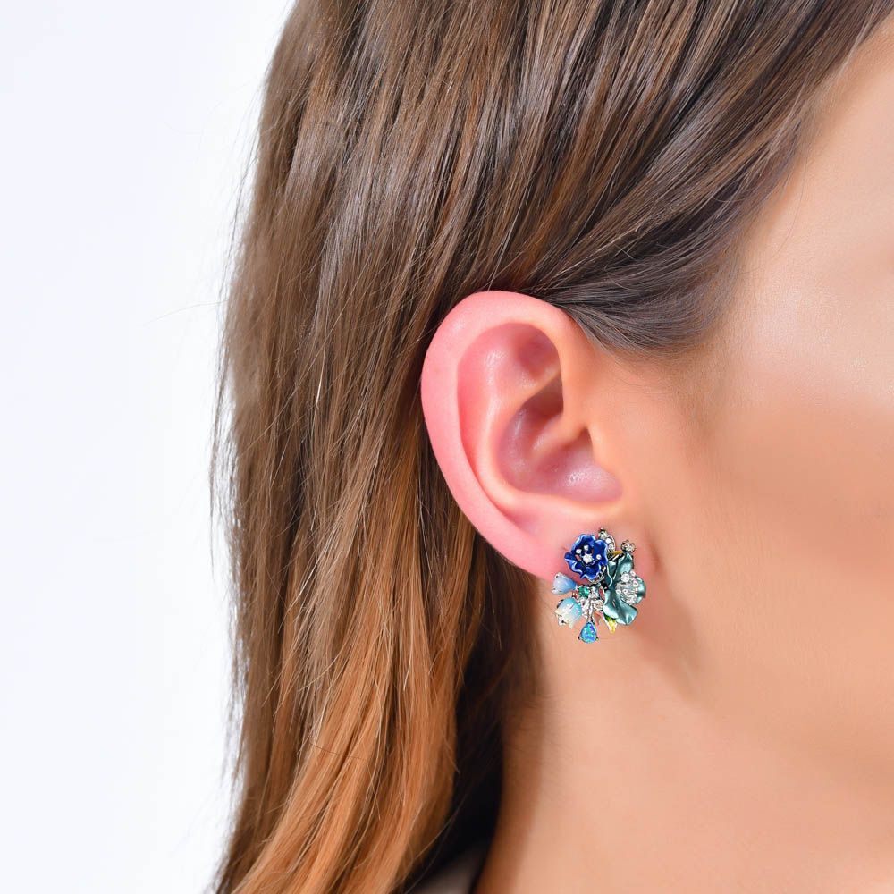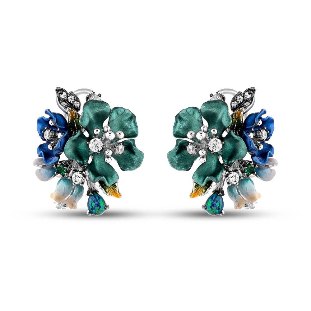 Primrose Yeşil Çiçek Tasarımlı Model-3 Mineli Gümüş Küpe