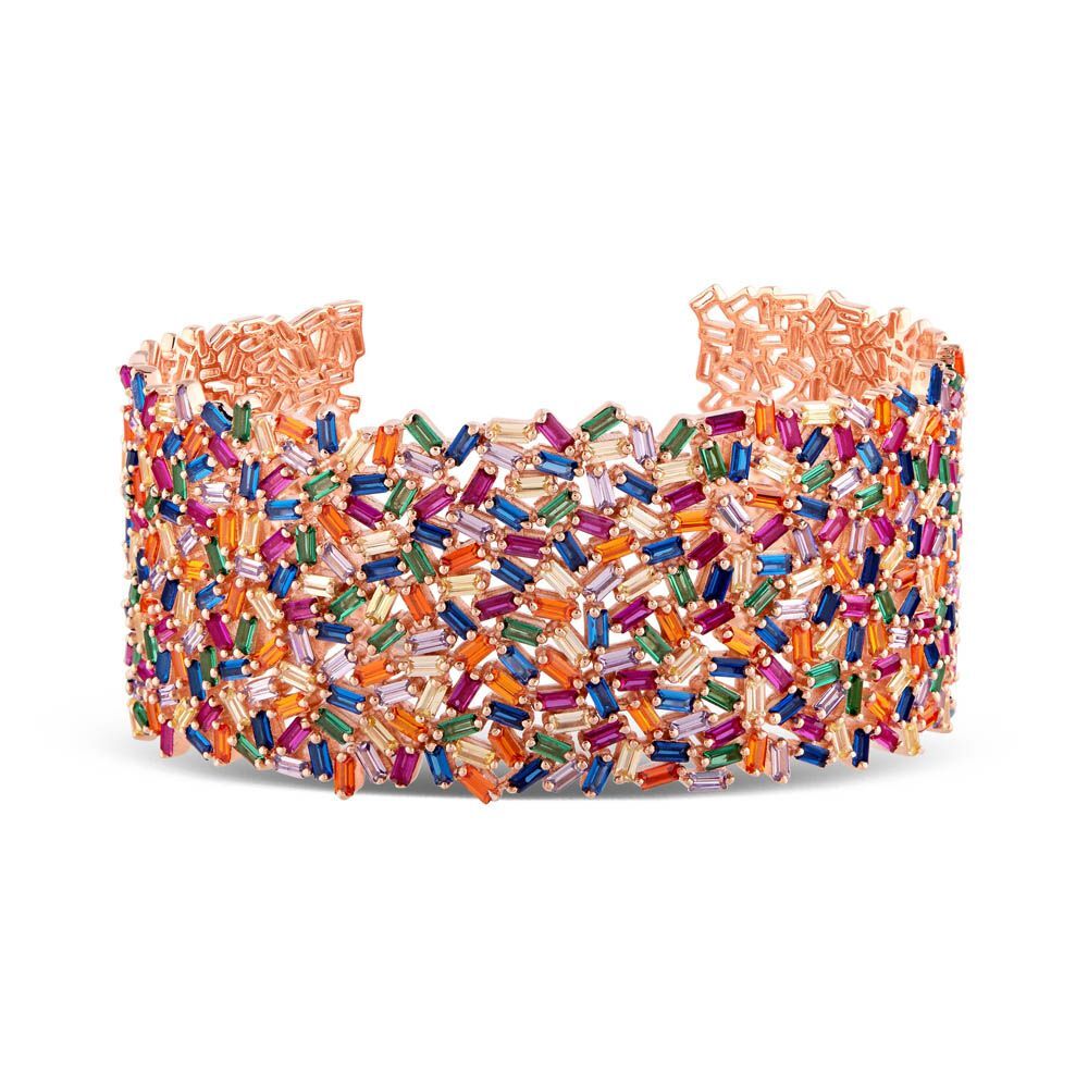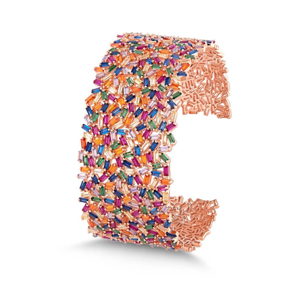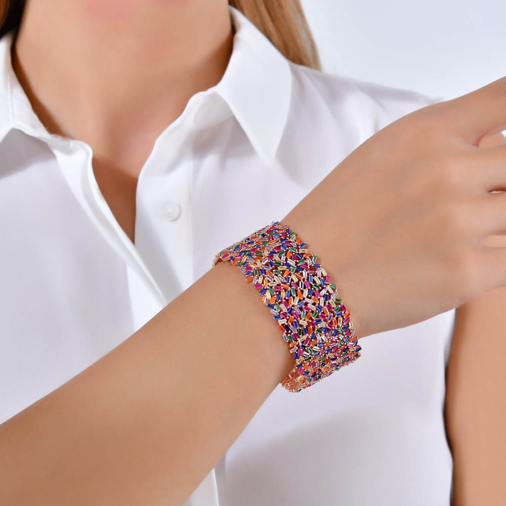 Rainbow Baget Kesim Kalın Rose Altın Renkli Gümüş Bileklik