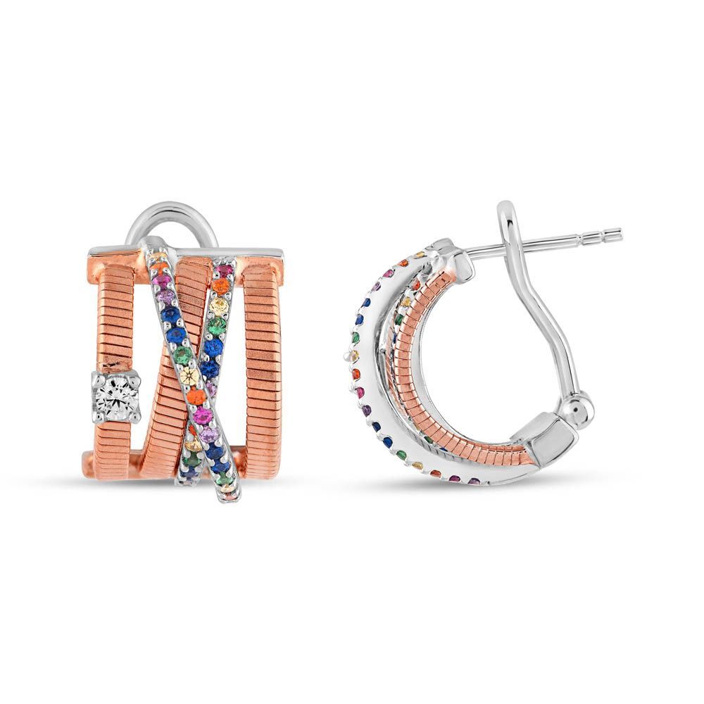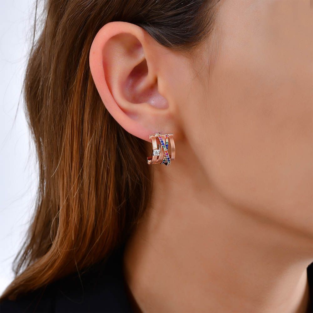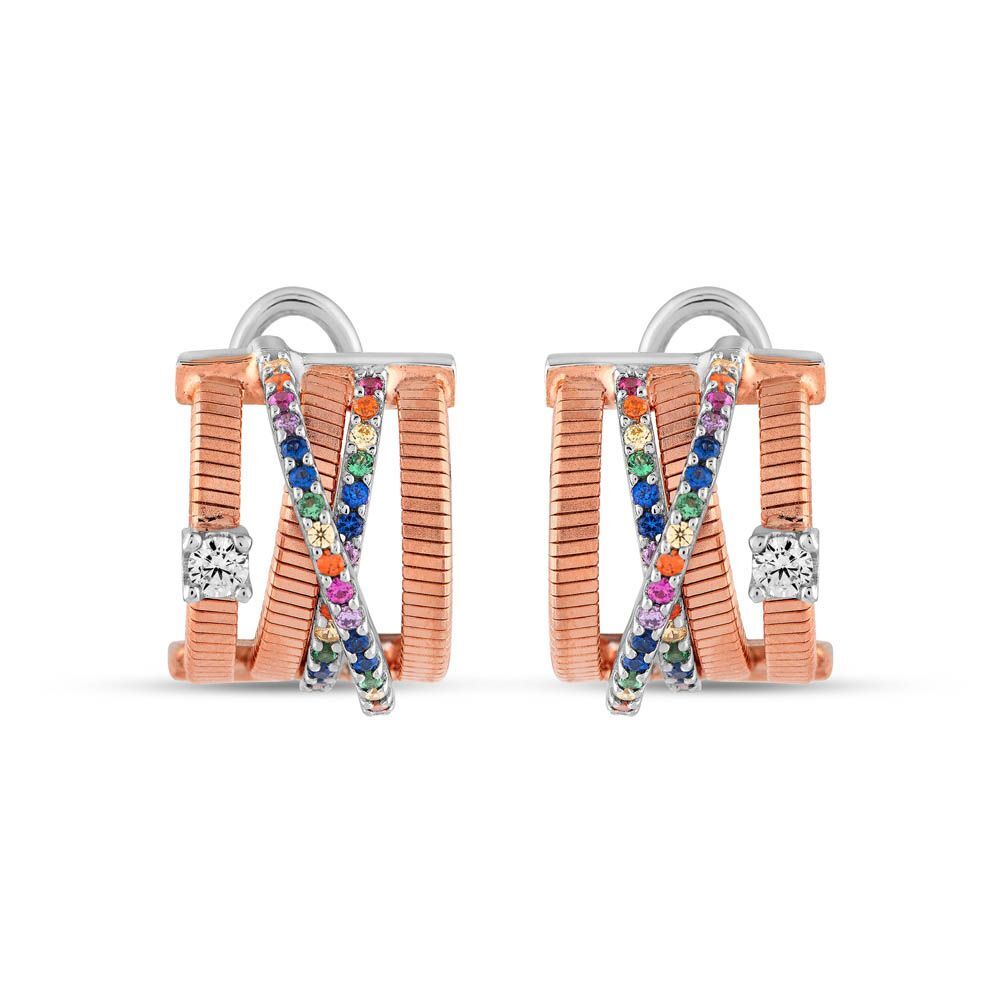 Rainbow Çoklu Çarpraz Baget Kesim Rose Altın Renkli Gümüş Küpe