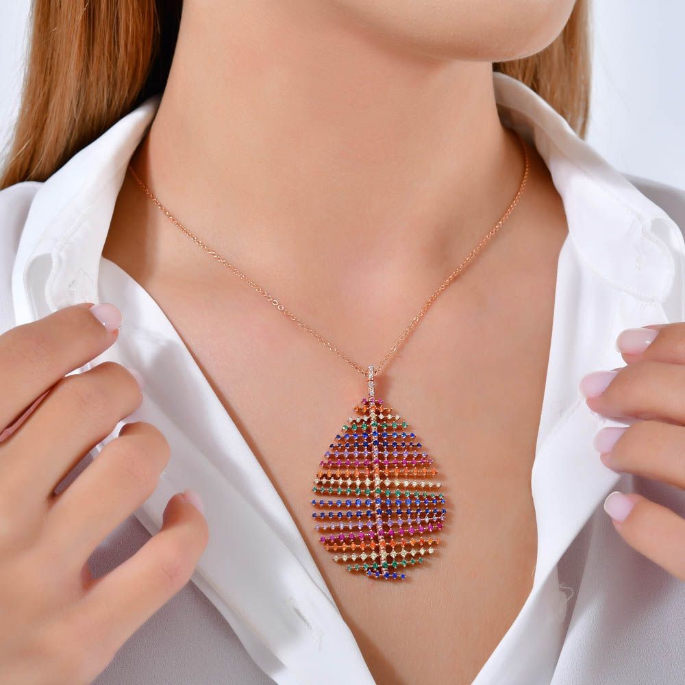 Rainbow Damla Baget Kesim Rose Altın Renkli Gümüş Kolye
