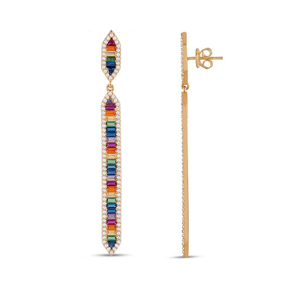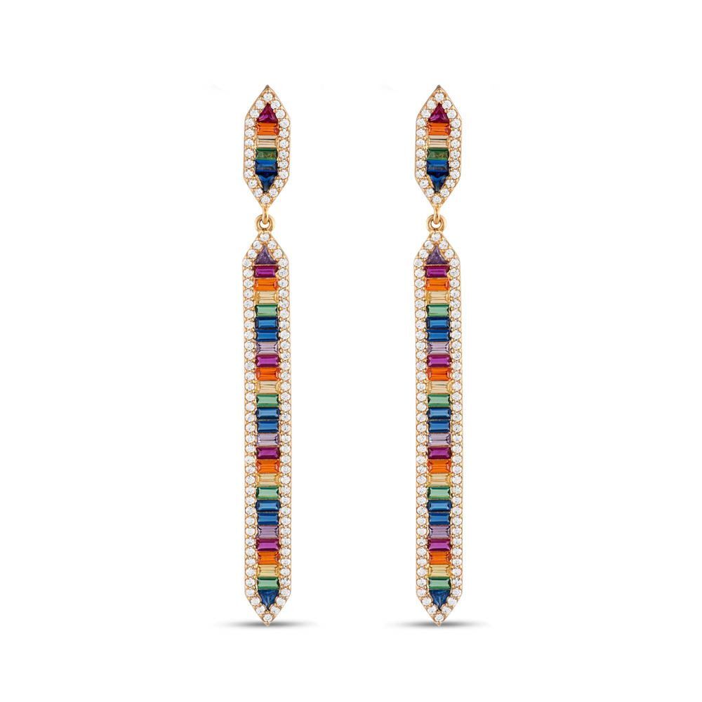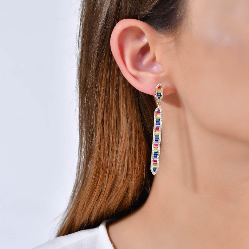 Rainbow Dizili Baget Kesim Yeşil Altın Renkli Gümüş Küpe