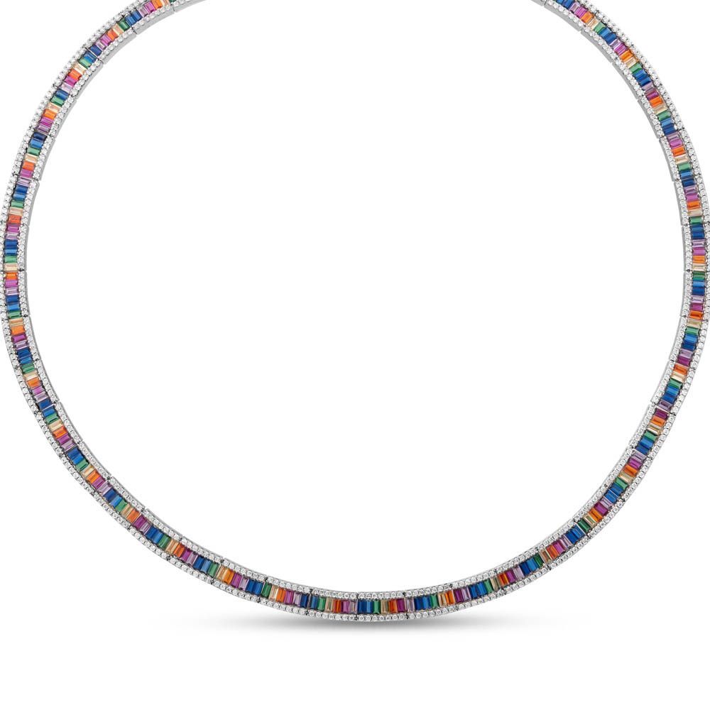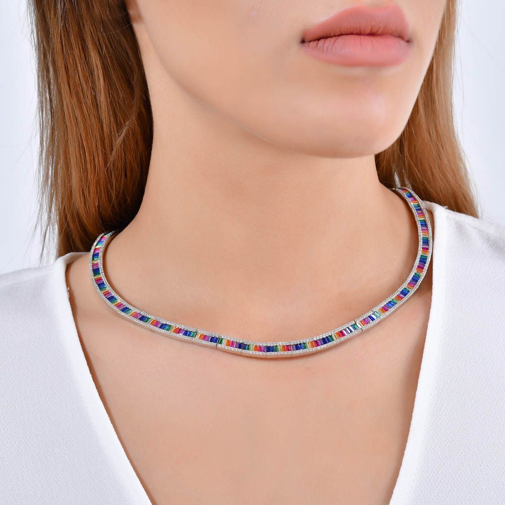 Rainbow Tamtur Baget Kesim Gümüş Kolye