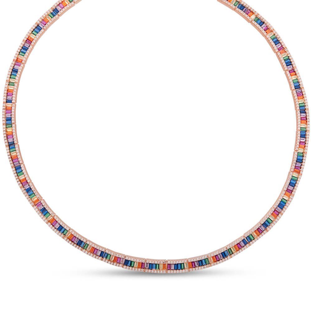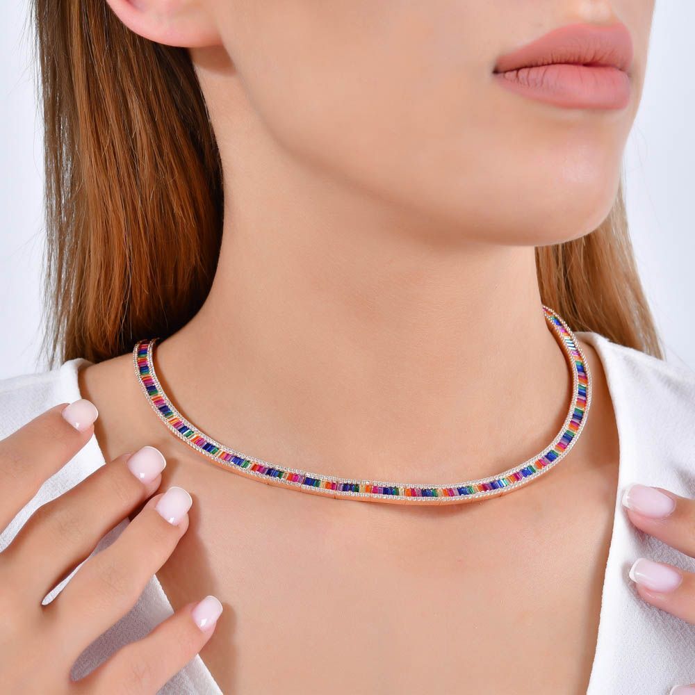 Rainbow Tamtur Baget Kesim Rose Altın Renkli Gümüş Kolye