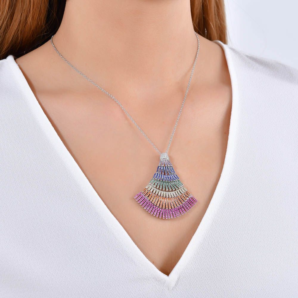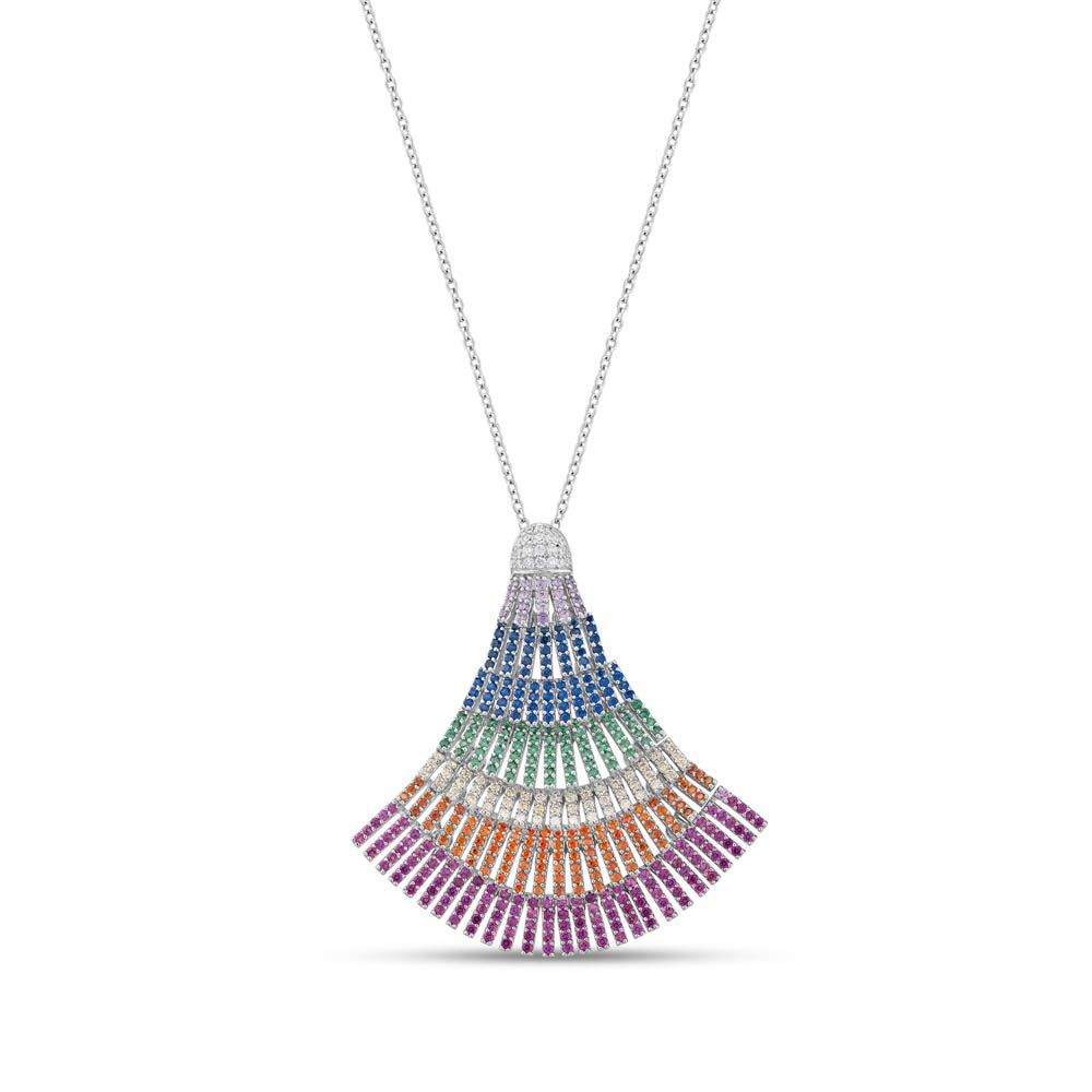 Rainbow Yelpaze Baget Kesim Gümüş Kolye