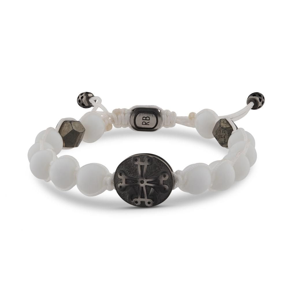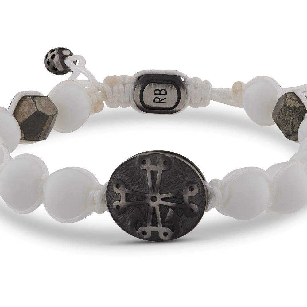 Santa Claus Çapalı Haç Sembollü Beyaz Örgü Gümüş Bileklik
