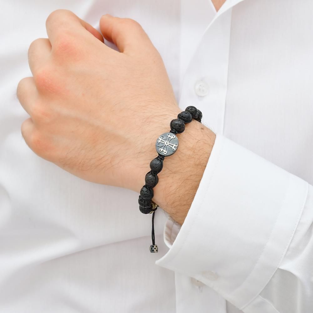 Santa Claus Çapalı Haç Sembollü Örgü Gümüş Bileklik