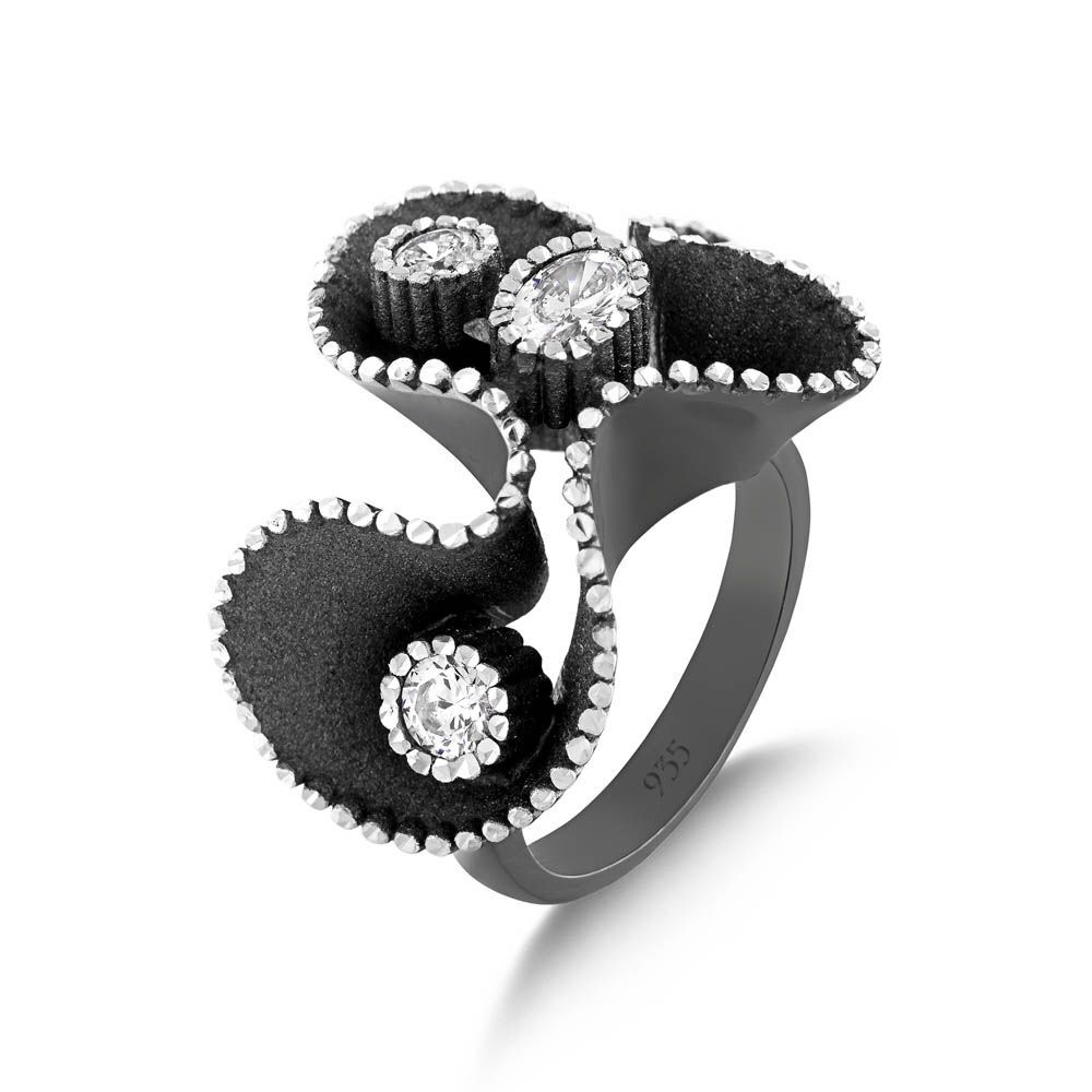 Soul Dance Model-2 Kuzey Işıkları Motifli Siyah Gümüş Yüzük