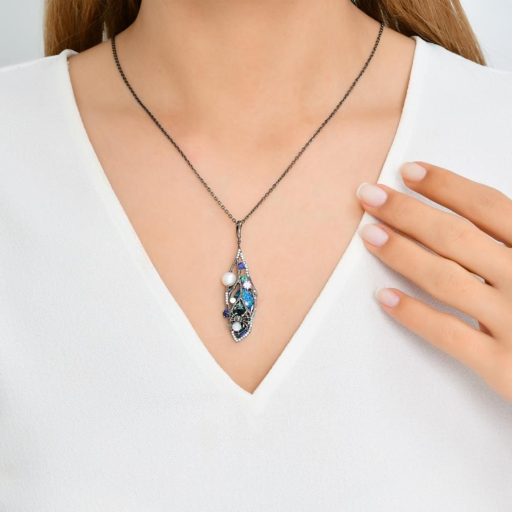 Spider Model-2 Zincirli Siyah Rodyumlu Gümüş Kolye